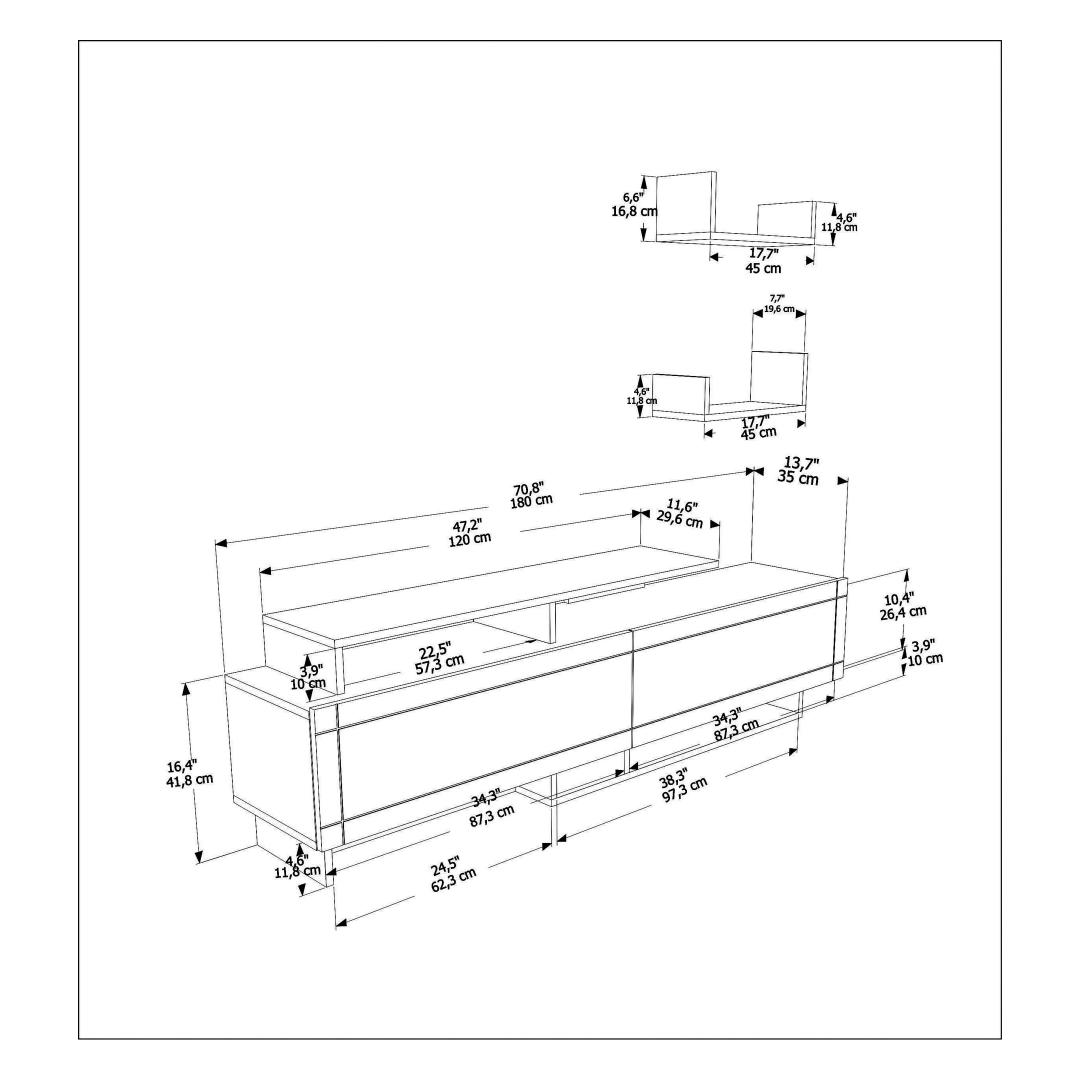 Width: 180 cm Height: 54 cm Depth: 36,8 cm