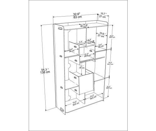 Width: 83 cm Height: 138 cm Depth: 27 cm