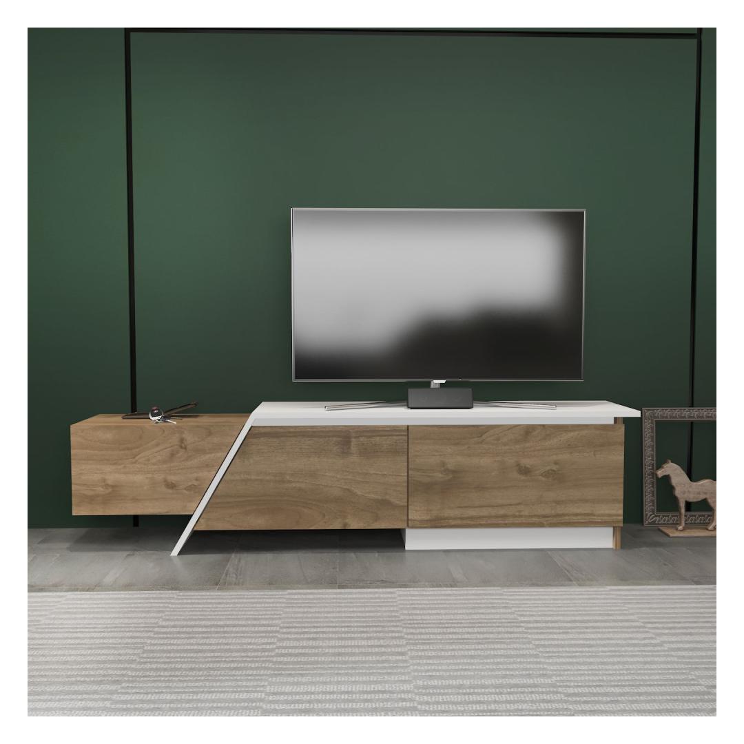 Muuda oma elutuba stiilseks ja organiseeritud ruumiks meie modernse telerialuse abil. See voolujooneline ja elegantne ese on loodud, et tõsta teie kodu sisustust, pakkudes samal ajal piisavalt ruumi kõigi teie meelelahutuse tarvikute jaoks.Tõsta oma ruumiÜtle hüvasti segaste kaablite ja kaootiliste meedia konsoolidega. Meie telerialus pakub puhtat ja voolujoonelist välimust, mis tõstab koheselt teie elutoa esteetikat. Pähkli ja valge värvi kombinatsioon lisab igasse ruumi natuke rafineeritust.Kvaliteetne käsitööValmistatud 100% melamiinkattega puitlaastplaadist, on see telerialus loodud kestma. 18mm paksus tagab vastupidavuse ja stabiilsuse, samas kui avarad mõõtmed 180cm x 28.6cm x 35cm pakuvad piisavalt ruumi teie teleri, mängukonsoolide ja muu jaoks.Organiseeritud hoiustamineHoia oma elutuba korras ja organiseerituna selle telerialuse rohkete hoiustamisvõimalustega. Avatud riiulid on ideaalsed dekoratiivsete esemete väljapanekuks, samas kui suletud kapid on ideaalsed segaduse varjamiseks. Ütle hüvasti segastele elutubadele ja tere puhtale ja organiseeritud ruumile.Tehnilised andmed:Materjal: 100% melamiinkattega puitlaastplaatPaksus: 18mmMõõtmed: 180cm (L) x 28.6cm (K) x 35cm (S)Värv: Pähkel ja valge Värv: Walnut White