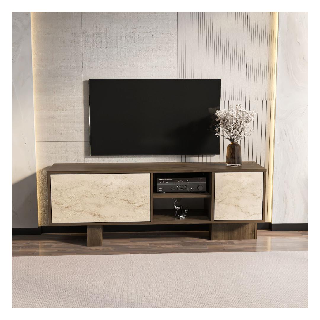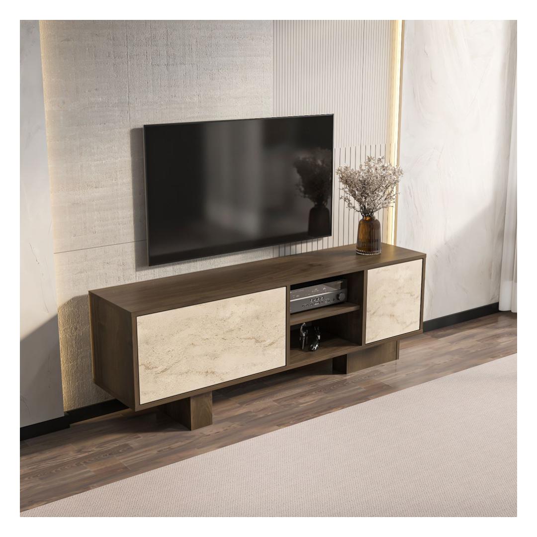 TV laud Monaco - Walnut, Travertine