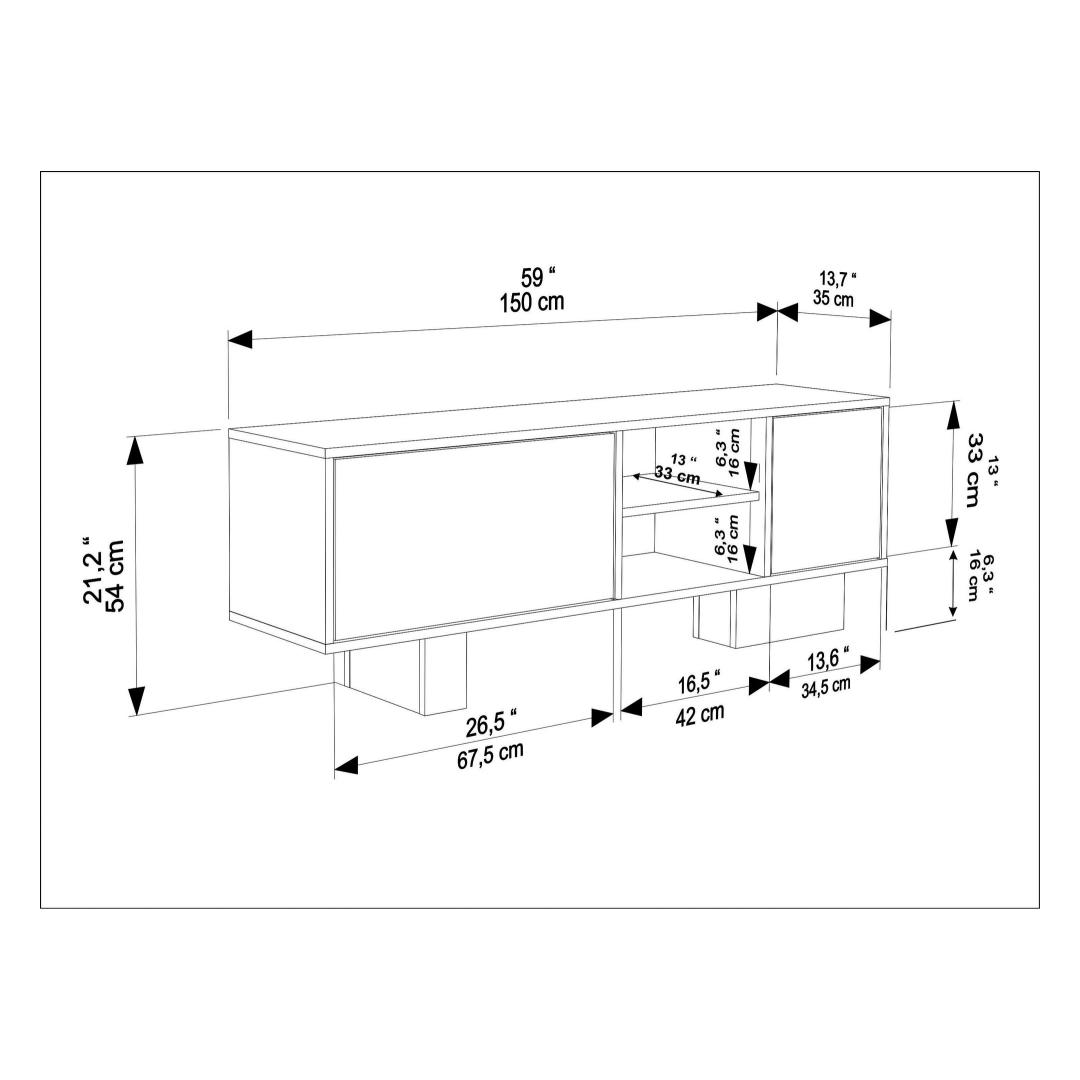 Width: 150 cm Height: 54 cm Depth: 35 cm