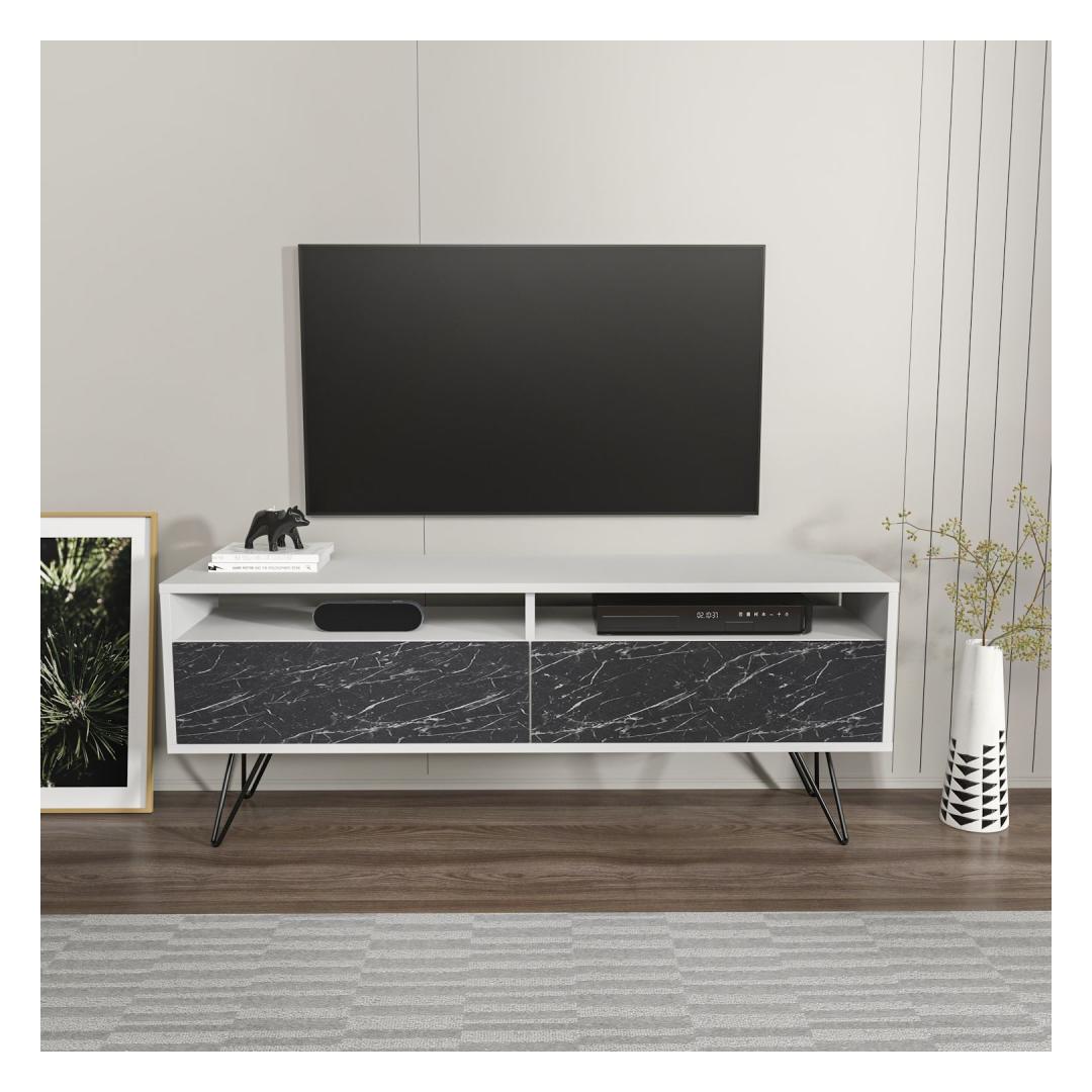 Muuda oma elutuba stiilseks ja organiseeritud ruumiks meie modernse telerialuse abil. See voolujooneline ja elegantne ese tõstab mitte ainult teie meelelahutusala välimust, vaid pakub ka piisavalt ruumi kõigi teie meediaesemete jaoks.Tõsta oma ruumiÜtle hüvasti segadusele ja tere rafineeritusele meie telerialusega. Selle puhtad jooned ja kaasaegne disain tõstavad koheselt teie toa esteetikat, muutes selle teie ruumi keskpunktiks.Piisav salvestusruumMitmete riiulite ja sektsioonidega pakub see telerialus palju salvestusvõimalusi teie meedia seadmete, DVD-de ja muu jaoks. Hoia oma ruum korras ja organiseeritud, samal ajal kui näitad oma lemmik dekoratiivesemeid.Kvaliteetne käsitööValmistatud 100% melamiinkattega puitlaastplaadist, on see telerialus mitte ainult vastupidav ja tugev, vaid ka lihtne puhastada ja hooldada. See talub ajakatset ja näeb aastaid välja nagu uus.Tehnilised andmed:Materjal: 100% melamiinkattega puitlaastplaatPaksus: 18 mmMõõtmed: 140 cm (L) x 53,2 cm (K) x 35 cm (S)Värv: Valge ja must Värv: White Bendire