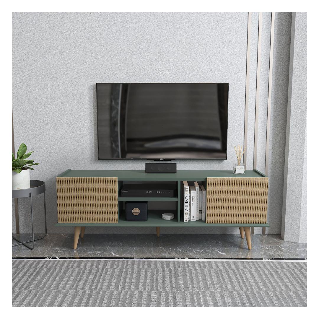 Muuda oma elutuba hubaseks ja stiilseks pelgupaigaks meie kauni telerialuse abil. Valmistatud 100% melamiinkattega puitlaastplaadist, on see telerialus mitte ainult vastupidav, vaid kiirgab ka modernset võlu, mis tõstab sinu ruumi välimust.Tõsta oma eluruumiÜtle hüvasti segadusele ja korraldusetusele meie avara telerialusega, mis pakub piisavalt ruumi kõigi sinu meediaesemete jaoks. Sujuv disain ja elegantne heleda pruuni ja rohelise värvikombinatsioon sulanduvad vaevata igasse sisustustüüpi, lisades sinu koju natuke rafineeritust.Loo lõõgastav õhkkondKujuta ette, et tuled pärast pikka päeva koju ja lõõgastud oma lemmiksaate ees selle kauni telerialuse juures. Selle tugev konstruktsioon tagab, et sinu teler on kindlalt toetatud, samas kui avar hoiuruum võimaldab sul hoida oma elutuba korras ja organiseerituna.Tehnilised andmed:Materjal: 100% melamiinkattega puitlaastplaatPaksus: 18 mmMõõtmed: Laius: 154,4 cmKõrgus: 56,6 cmSügavus: 31,3 cmVärv: Helepruun ja roheline Värv: Light Brown Green
