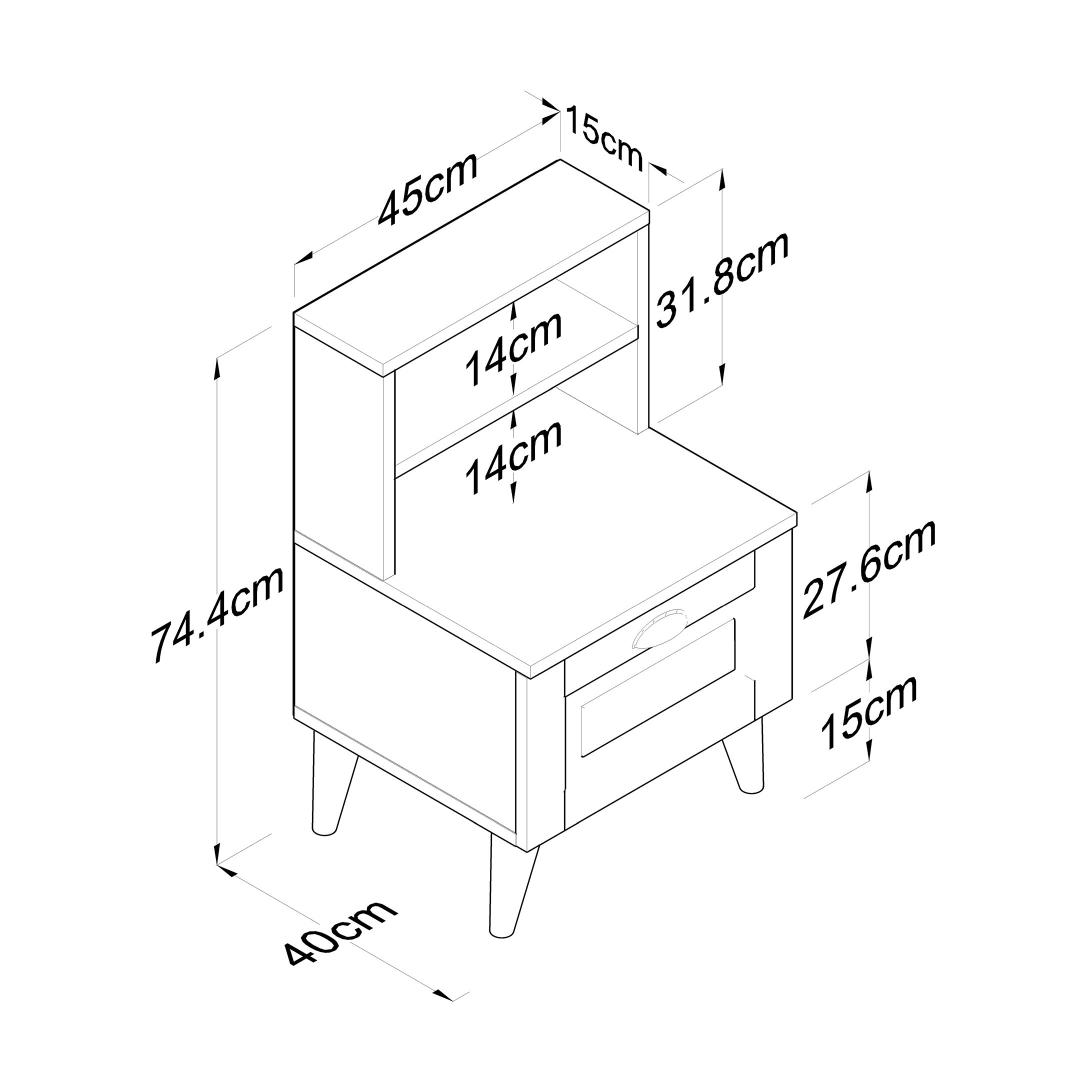 Width: 45 cm Height: 74,4 cm Depth: 40 cm