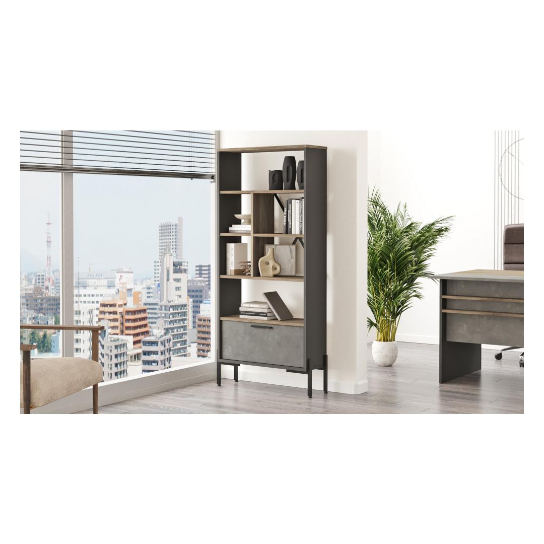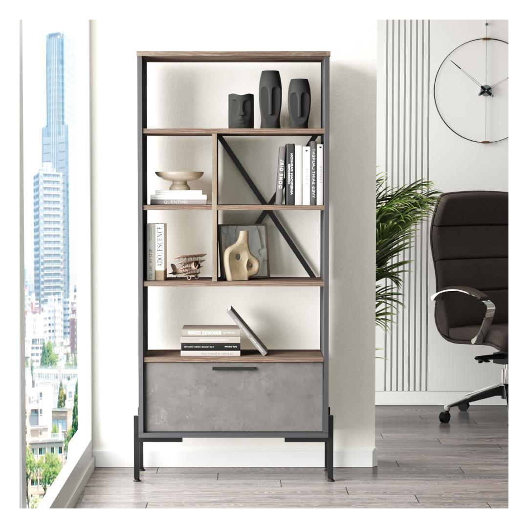 Kas oled väsinud segadusest ja korraldamata ruumidest? Ära vaata kaugemale kui meie hämmastav raamaturiiul, mis on loodud mitte ainult sinu asjade korraldamiseks, vaid lisab ka modernset elegantsi sinu koju.Korralda stiilseltSelle stiilse metallraami ja 100% melamiinkattega puitlaastplaadi konstruktsiooniga on see raamaturiiul mitte ainult vastupidav, vaid ka stiilne. Pruni, halli ja antratsiidi värvide kombinatsioon annab sellele kaasaegse ja tööstusliku ilme, mis tõstab esile iga ruumi sinu kodus.Tõsta oma ruumiÜtle hüvasti igavate ja vananenud raamaturiiulitega ning tere tõeliselt silmapaistvale mööbliesemele. Olgu see siis sinu lemmikraamatute, fotode või dekoratiivsete esemete väljapanekuks, see raamaturiiul muutub kindlasti iga ruumi keskpunktiks.Tehnilised andmed:Materjal: 100% melamiinkattega puitlaastplaatPaksus: 18 mmMetallraam lisavastupidavuse jaoksMõõdud: Laius 75,5 cm, Kõrgus 160,8 cm, Sügavus 25,5 cmVärvid: Pruun, Hall, AntratsiitKontseptsioon: Kaasaegne - Uudsus, TööstuslikÄra lepi tavalisusega, kui saad omada erakordset. Muuda oma ruumi meie modernse ja innovatiivse raamaturiiuliga juba täna! Värv: Brown Grey Anthracite
