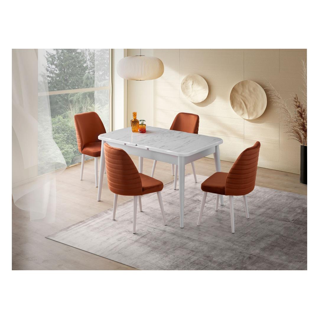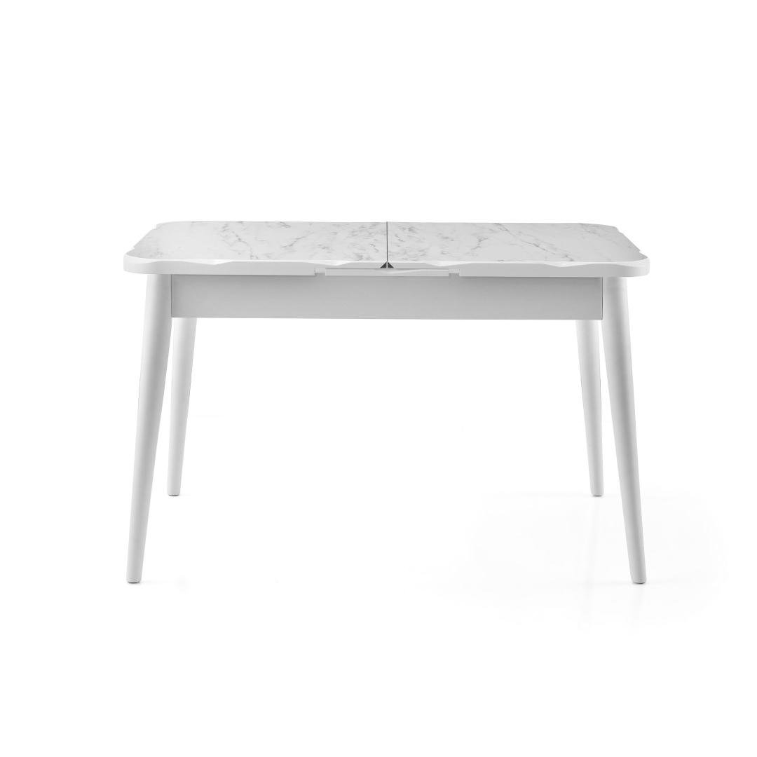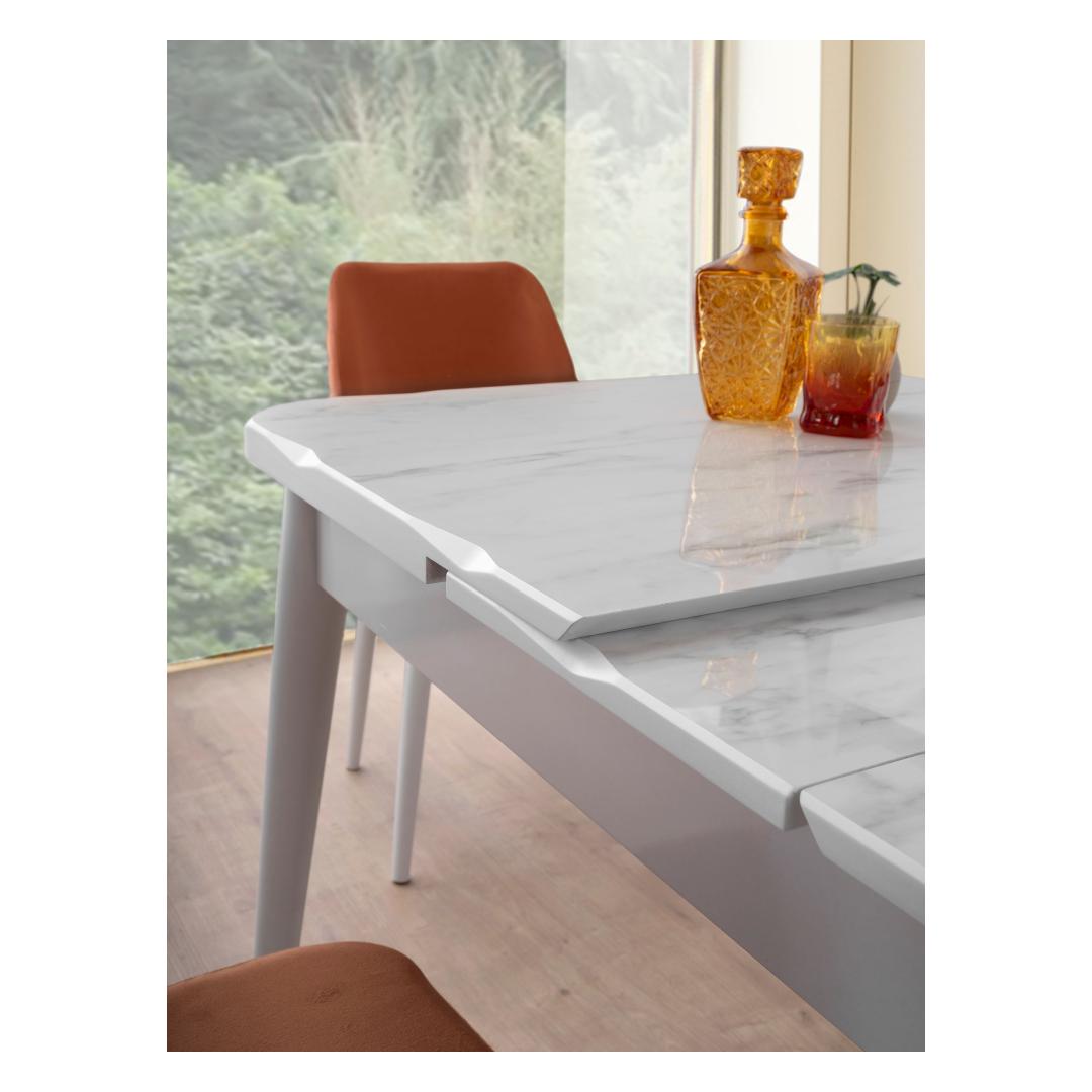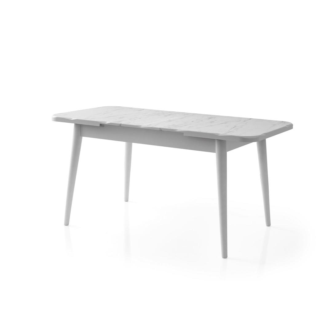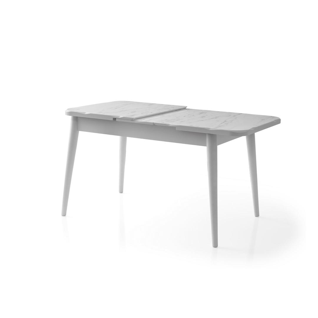 Muuda oma söögituba elegantsi ja funktsionaalsuse ruumiks meie pikendatava söögilaua abil. See hämmastav ese ei ole mitte ainult laud, vaid ka stiili ja rafineerituse väljendus, mis tõstab teie söögikogemuse uuele tasemele.Elegants ja MitmekesisusSelle söögilaua voolujooneline disain kindlasti muljet avaldab ja lisab teie koju modernsuse puudutuse. Selle pikendatav omadus võimaldab mugavalt mahutada rohkem külalisi, muutes selle ideaalseks peresündmusteks või õhtusöökideks.Kvaliteet ja VastupidavusValmistatud 100% melamiinkattega kiudplaadist, on see laud mitte ainult stiilne, vaid ka loodud kestma. 18 mm paksus tagab tugevuse, samas kui plastjalad pakuvad stabiilsust ja tuge. Kandevõimega 100 kg võite olla kindel, et see laud peab ajale vastu.Aegumatu Valge VärvSelle söögilaua valge värv lisab teie ruumi värskuse ja helguse, luues söögikordade jaoks tervitava atmosfääri. Ükskõik, kas teie sisustus on modernne või traditsiooniline, sulandub see laud sujuvalt sisse ja täiustab teie söögitoa üldilmet.Ärge jätke kasutamata võimalust omada seda erakordset pikendatavat söögilauda. Tõstke oma söögikogemus uuele tasemele ja tehke oma külalistele muljet selle stiilse ja mitmekesise esemega. Tellige oma täna ja muuda oma söögituba elegantsi ja rafineerituse ruumiks.Tehnilised Andmed:Materjal: 100% melamiinkattega kiudplaatPaksus: 18 mmJalad: PlastikLaud: Laius: 130 cm, Kõrgus: 75 cm, Sügavus: 80 cmPikendatava laua laius: 164 cmKandevõime: 100 kgVärv: Valge Värv: White