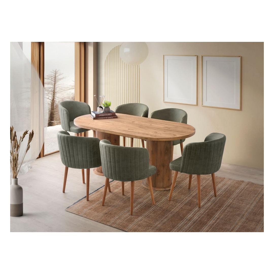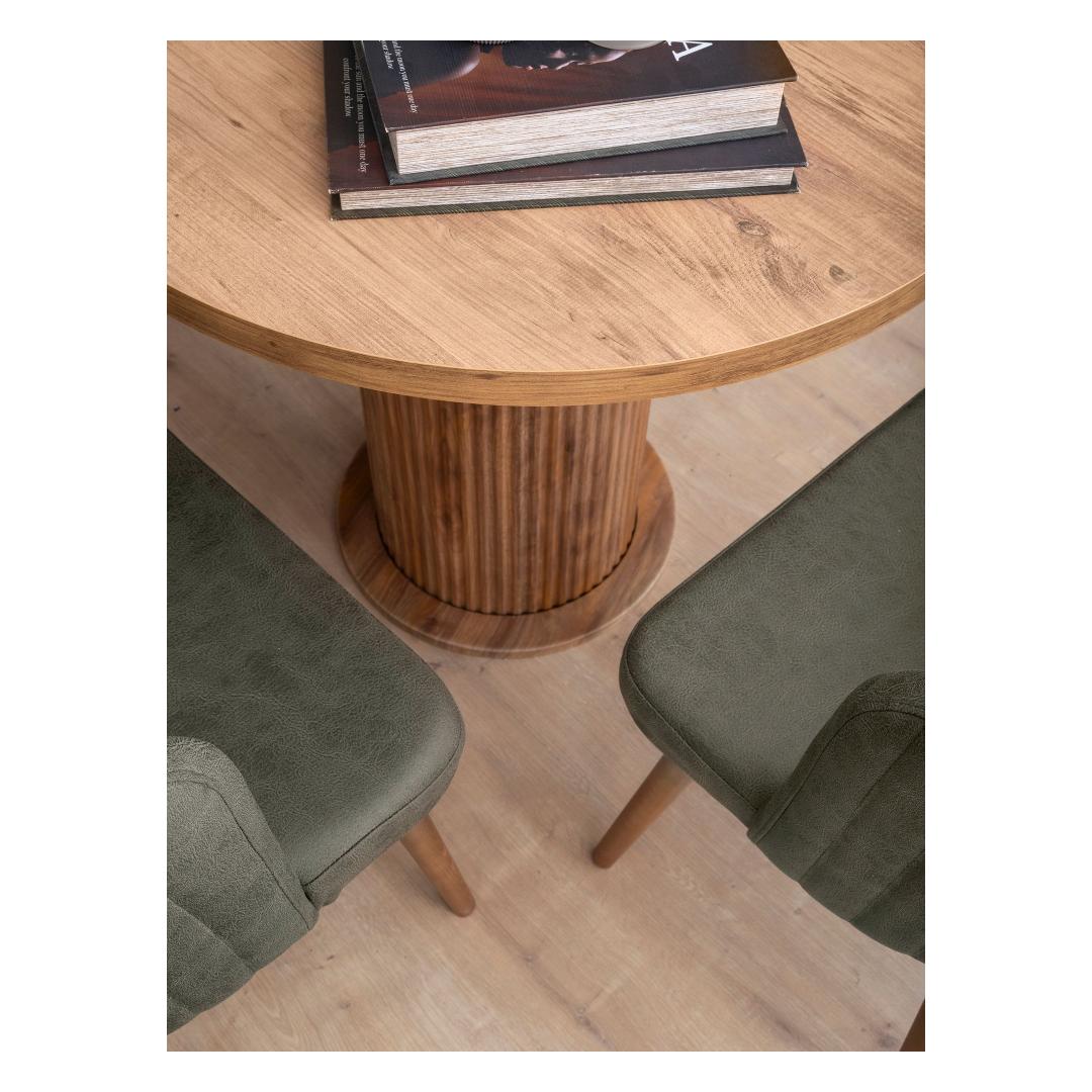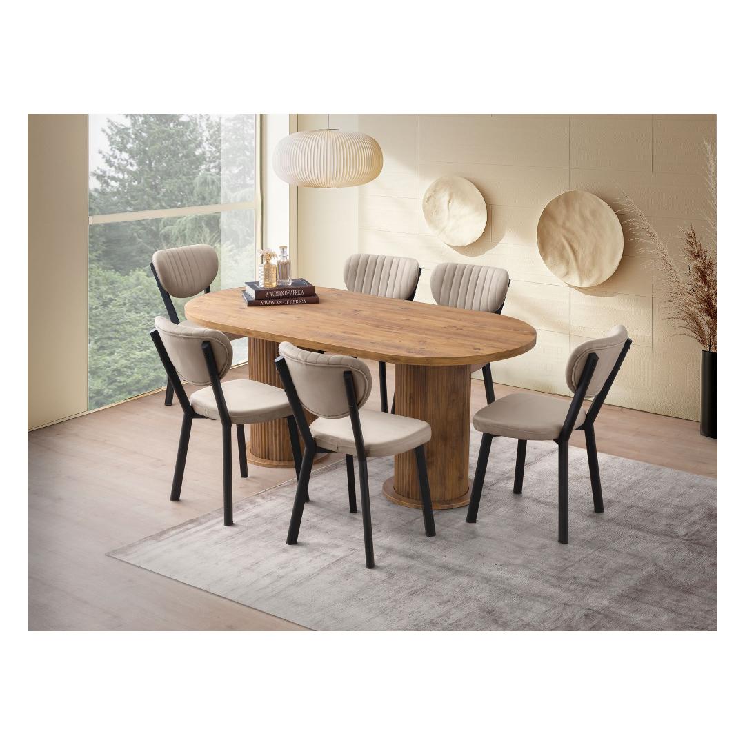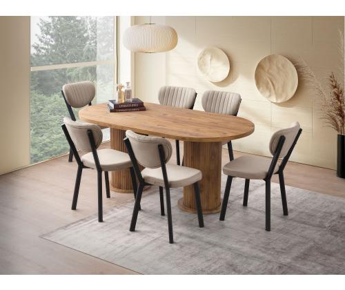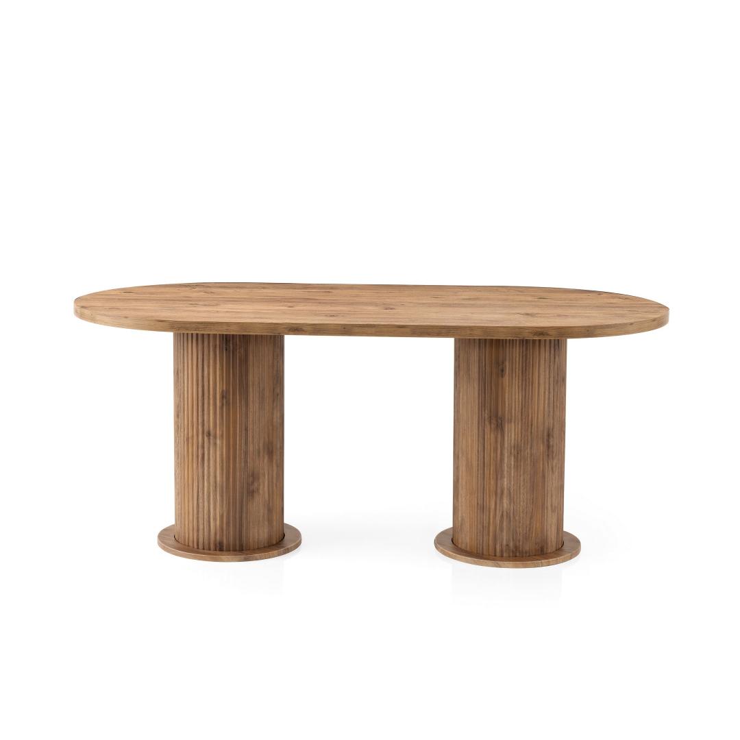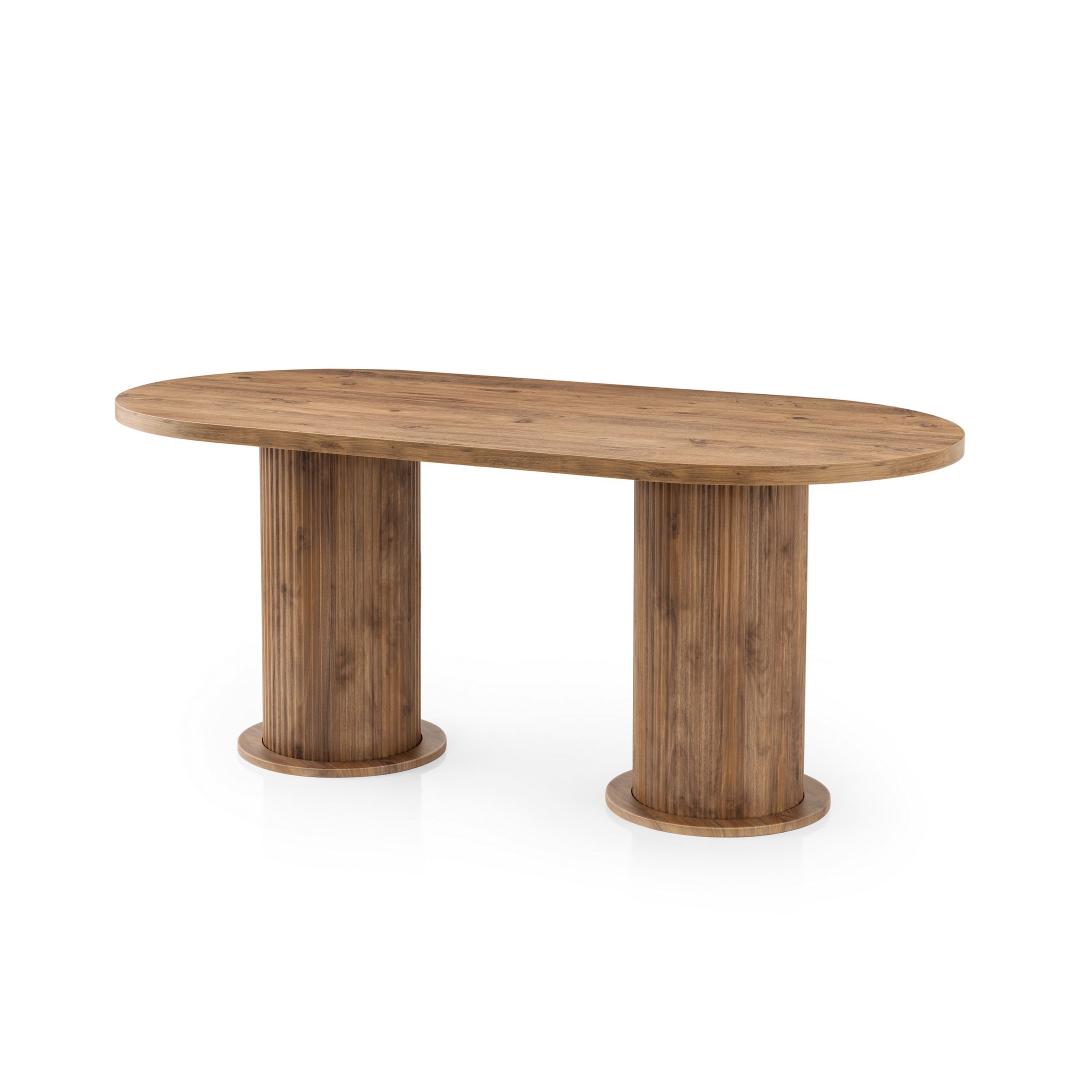 Muuda oma söögituba stiilseks ja kutsuvaks pelgupaigaks meie kauni pähklipuidust söögilauaga. Valmistatud 100% melamiinkattega puitlaastplaadist, kiirgab see laud elegantsi ja vastupidavust. Rikkalik pähklipuu värv lisab igasse ruumi soojust ja rafineeritust, luues peresündmusteks ja õhtusöökideks tervitava atmosfääri.Elegantne disain igasse kojuSelle söögilaua sujuv ja modernne disain sobib ideaalselt igasse kodu sisustuse stiili. Selle puhtad jooned ja minimalistlik esteetika teevad sellest mitmekesise mööblieseme, mida saab hõlpsasti kombineerida erinevate toolide ja aksessuaaridega.Kestlik konstruktsioon pikaealisuseksValmistatud 18mm paksusest melamiinkattega puitlaastplaadist ja tugevatest plastjaladest, on see söögilaud loodud kestma. See talub igapäevast kasutamist ja selle kandevõime on kuni 100kg, mistõttu on see ideaalne peredele, kus on lapsi või sagedasi külalisi.Avar ja funktsionaalneLaiusega 180cm, kõrgusega 77cm ja sügavusega 90cm pakub see söögilaud piisavalt ruumi peresöökideks või õhtusöökideks. Selle avar suurus võimaldab mugavat istumist kuni 6 inimesele, muutes selle ideaalseks keskpunktiks teie söögitoas.Paranda oma söögikogemust meie pähklipuidust söögilauaga ja loo unustamatuid mälestusi oma lähedastega selle kauni ja funktsionaalse mööbliesemega.Tehnilised andmed:Materjal: 100% melamiinkattega puitlaastplaatPaksus: 18mmJalad: PlastikMõõtmed: 180cm (L) x 77cm (K) x 90cm (S)Kandevõime: 100kgVärv: Pähkel Värv: Walnut