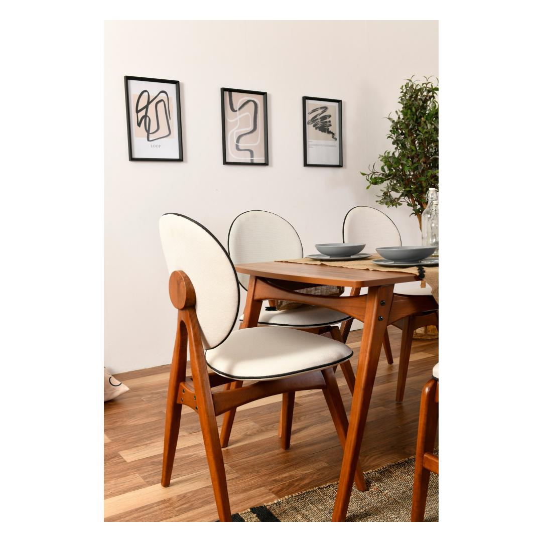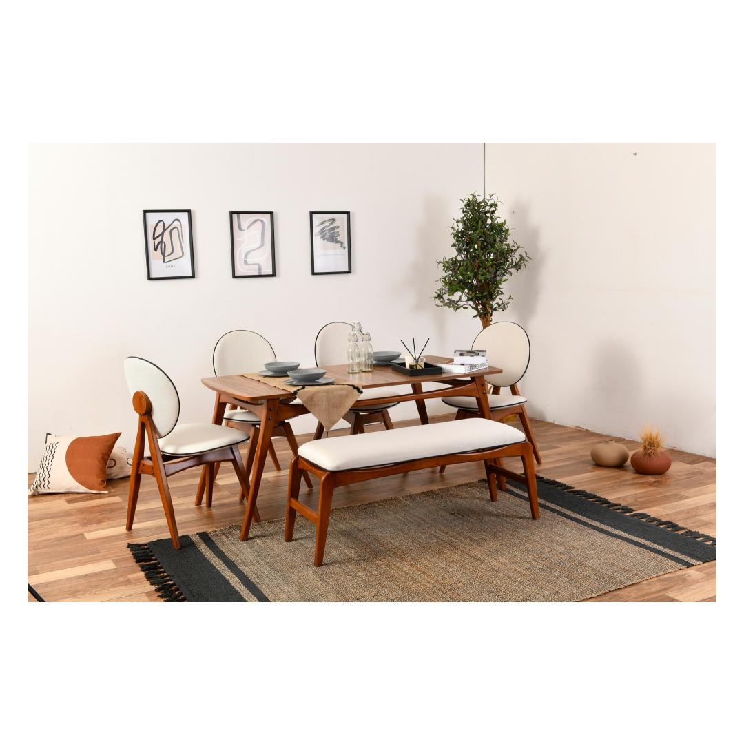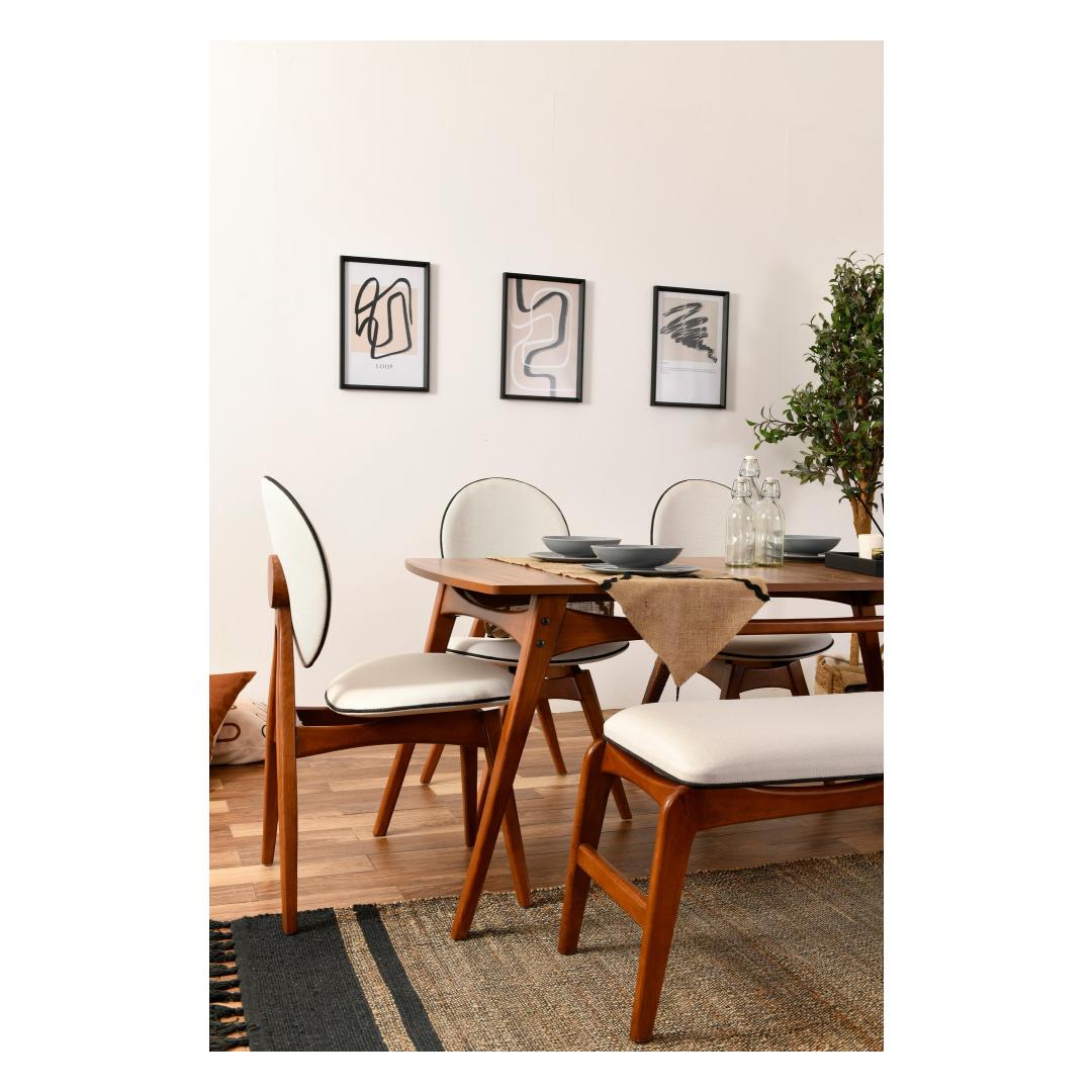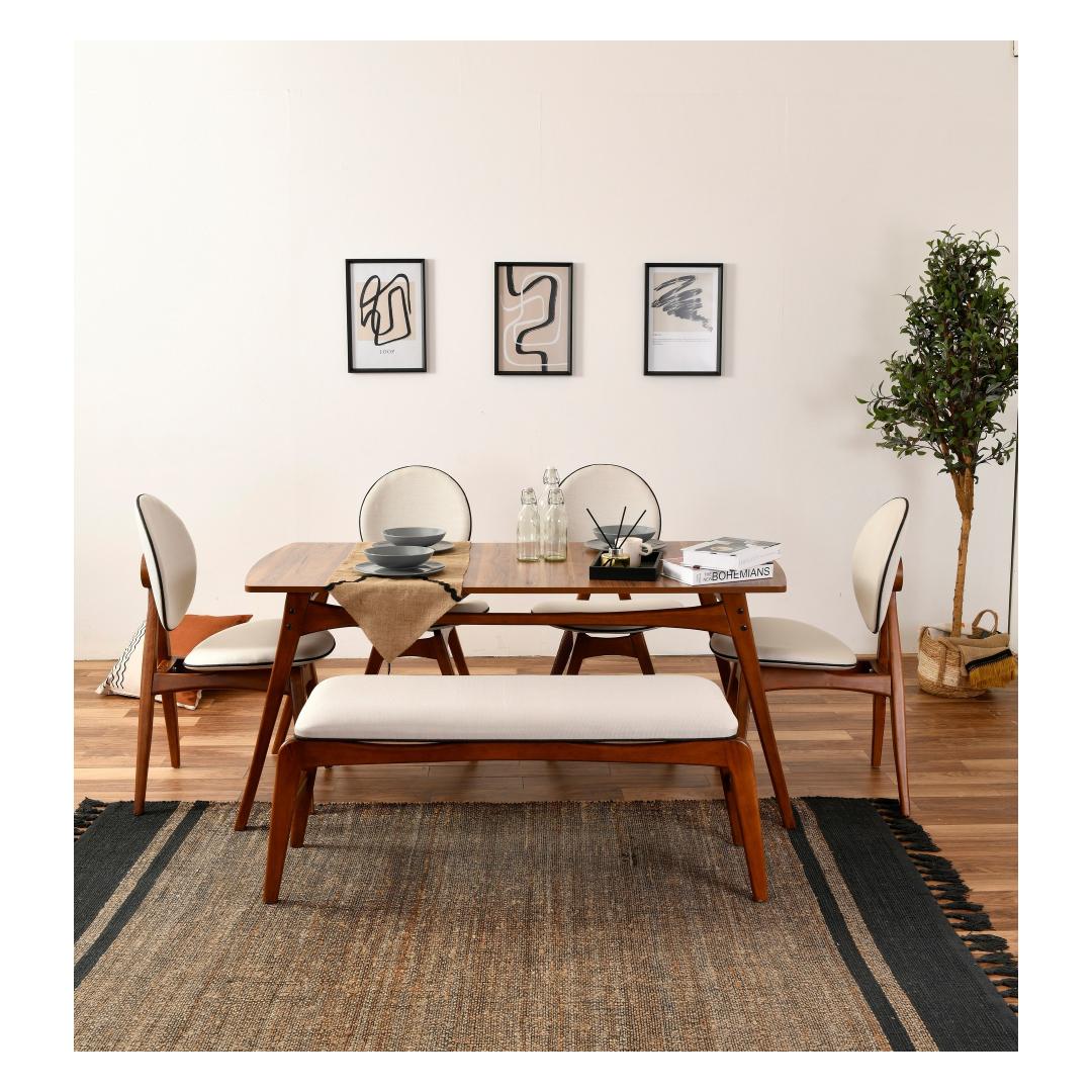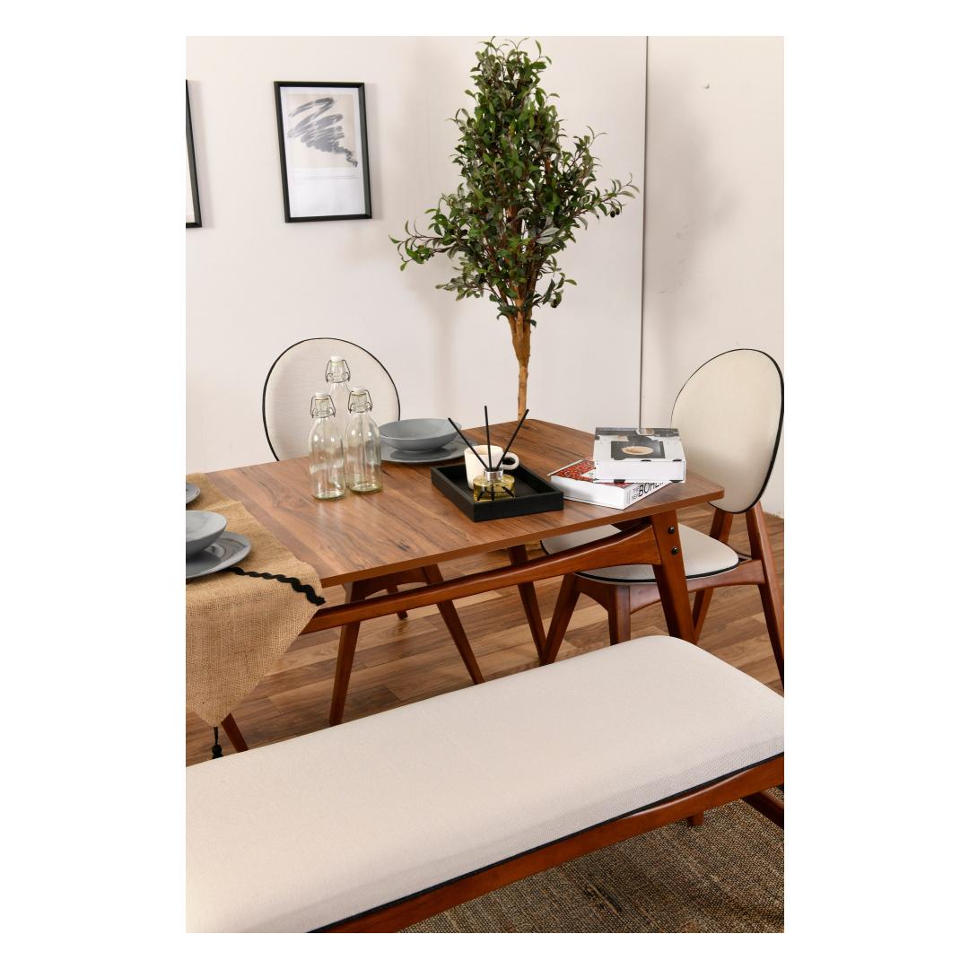Muuda oma söögituba hubaseks ja kutsuvaks ruumiks meie kauni 6-osalise Laua ja Toolide Komplektiga. Valmistatud 100% PÄRNUMEEST, kiirgab see komplekt elegantsi ja rafineeritust, muutes selle ideaalseks lisandiks igasse koju.Elegantne Disain Teie KoduleLaual on stiilne disain, mille laius on 78 cm, pikkus 160 cm ja kõrgus 75 cm, pakkudes piisavalt ruumi pereringi koosolekuteks ja õhtusöökideks. Pink, mille laius on 120 cm, sügavus 40 cm ja kõrgus 45 cm, pakub külalistele mugavat istumist. Toolid, mille laius on 54 cm, sügavus 44 cm ja kõrgus 90 cm, on kaetud luksusliku linase ja nubuki kangaga, et tagada lisamugavus ja stiil.Soojad Pähklipuu ja KreemivärvidKomplekt on saadaval kaunis pähklipuu ja kreemivärvi kombinatsioonis, lisades teie söögialale soojust ja rafineeritust. Olgu tegemist ametliku õhtusöögi või lõbusate söögikordadega lähedastega, see komplekt tõstab teie söögikogemuse uuele tasemele.Tehnilised Üksikasjad:Materjal: 100% PÄRNUMEESTPaksus: 18 mmLaua Mõõdud: Laius: 78 cm, Pikkus: 160 cm, Kõrgus: 75 cmPingi Mõõdud: Laius: 120 cm, Sügavus: 40 cm, Kõrgus: 45 cmTooli Mõõdud: Laius: 54 cm, Sügavus: 44 cm, Kõrgus: 90 cmPolsterdus: Linane Kangas (Toolid), Nubuki Kangas (Pink)Värv: Pähklipuu ja Kreem Värv: Walnut Cream