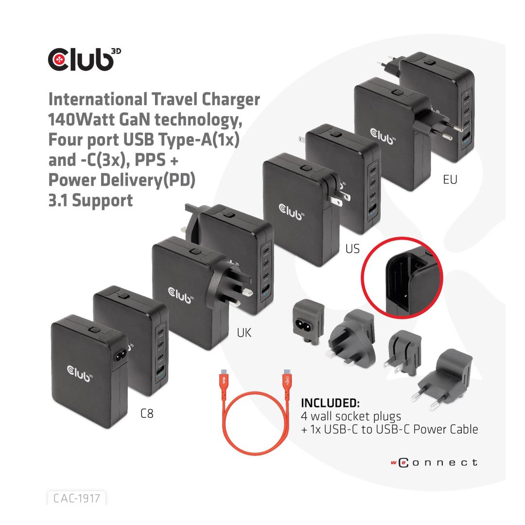 MOBILE TRAVEL CHARGER USB-C/140W GAN CAC-1917 CLUB3D