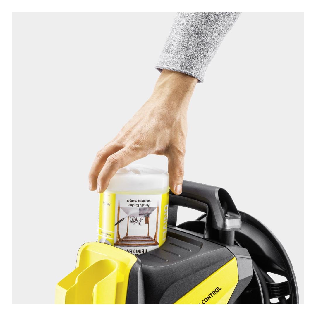 With the K 4 Premium Power Control Flex pressure washer, every surface can be cleaned at the right pressure. The application consultant integrated into the Kärcher Home & Garden app helps the user to find the right pressure by providing practical tips on every cleaning situation and cleaning task – for perfect cleaning results. For maximum control, the pressure level can be easily adjusted by turning the spray lance or checked on the G 160 Q Power Control trigger gun. The overall handling is very simple thanks to the convenient hose reel. Other equipment details of the K 4 Premium Power Control Flex include the Kärcher Plug 'n' Clean detergent system for effortless detergent changes, the PremiumFlex high-pressure hose for added convenience, a telescopic handle for easy transport, the Quick Connect system to save time and effort clicking the high-pressure hose in and out of the device, plus the trigger gun and a parking position for readily accessible accessories at all times.