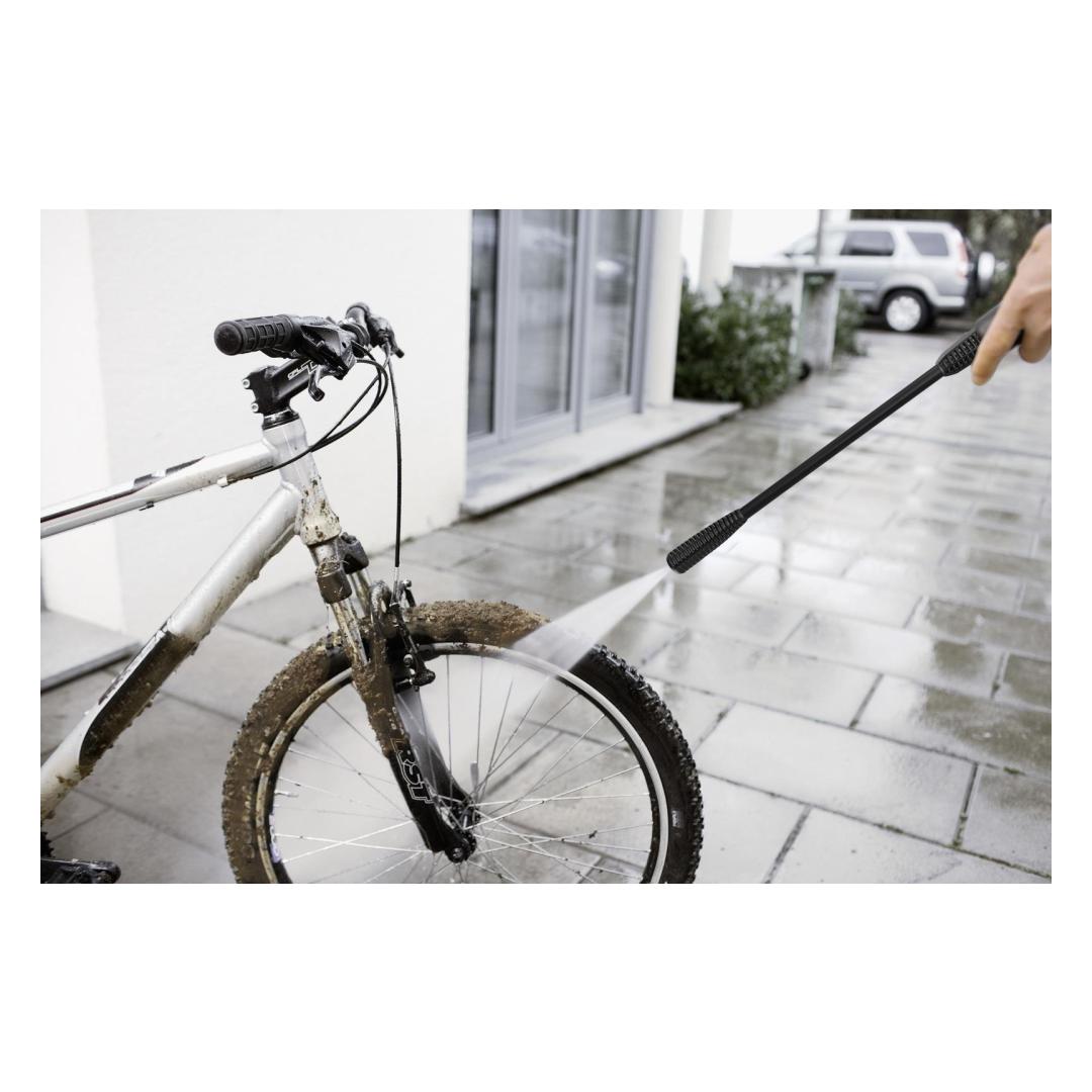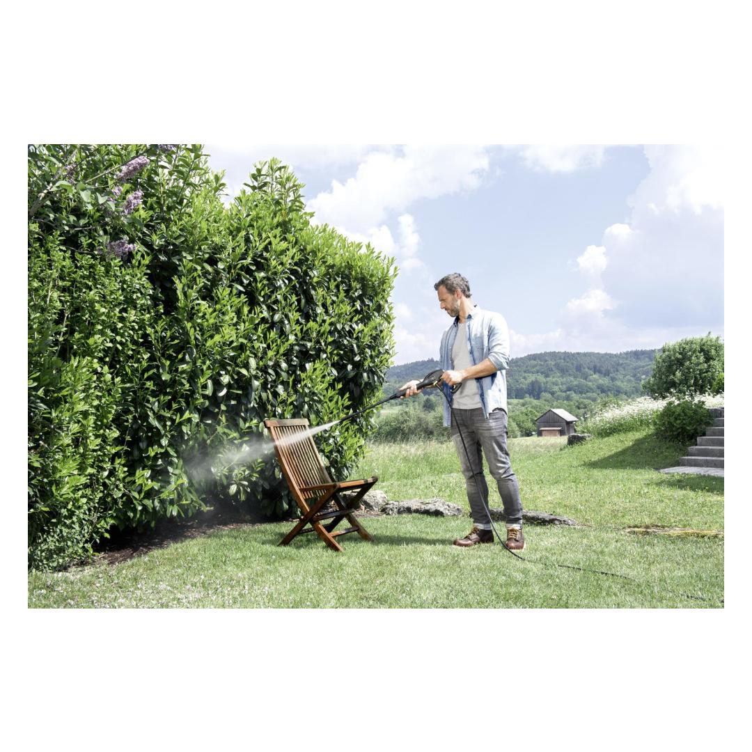 Whether it's dirty vehicles, steps, garden tools or garden furniture, the K 2 Universal Edition OJ pressure washer with single spray lance will have them spick and span in a flash. The compact device is ideal for all occasional cleaning tasks around the home and yard. The flat jet on the single spray lance provided achieves targeted cleaning for contoured surfaces. Thanks to its low weight and the built-in, handy carrying handle, you can easily transport the K 2 Universal Edition OJ to where you need it. The Quick Connect system offers additional convenience as its quick coupling allows the three metre long high-pressure hose to be connected to and disconnected from the device and trigger gun easily. All of the included accessories can be easily stowed on the K 2 Universal Edition OJ. This is made possible by the clever brackets on the device. Even the power cable can be stowed away neatly in the integrated cable slot.