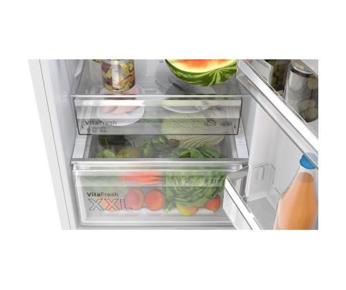 Bosch’s refrigerator helps you keep food fresher for longer while allowing for easy organization. The VitaFresh XXL drawers provide the ideal environment for storing meat, fish, fruit and vegetables – with lower temperatures and adjustable humidity to prevent spoilage and preserve flavor.