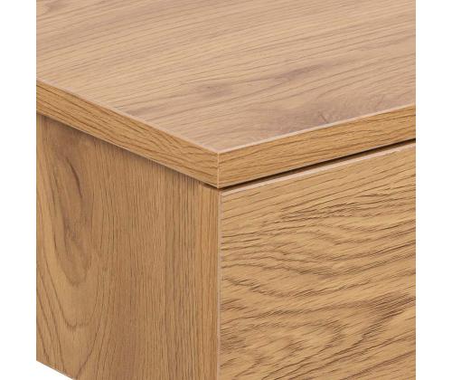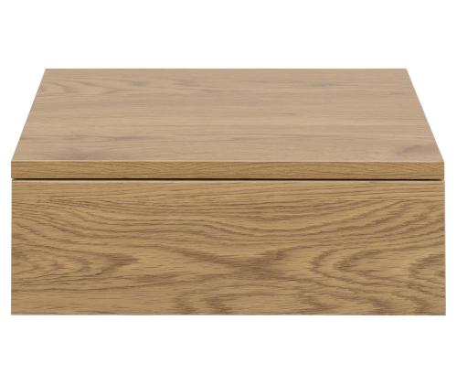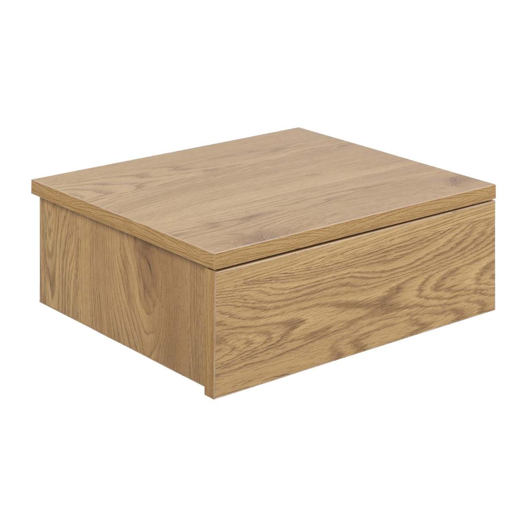 The ideal addition to any bedroom if you are into minimalistic, sleek design. With clean lines and a wild oak look. It is easy to attach the bedside table next to your bed at the preferred height. Thanks to the smooth gliding drawer, you can keep your essentials hidden. The drawer has metal runners. Integrated handle gives a clean look. The dimensions are 37x32xH13cm.
