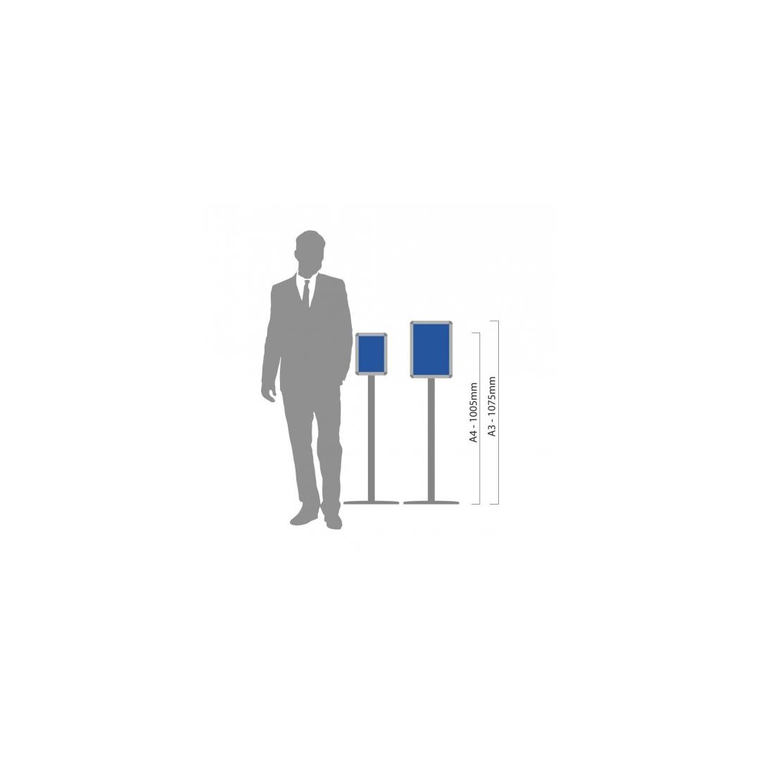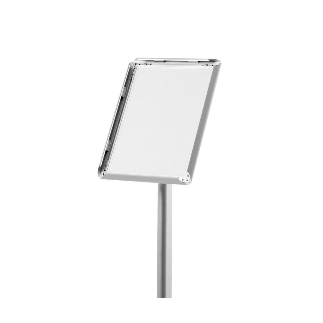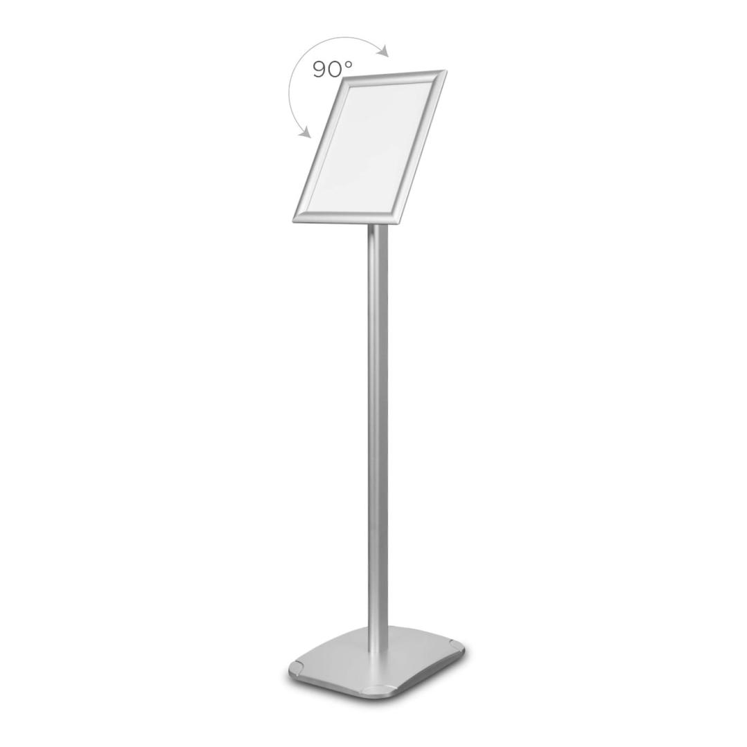 Advertising stand with a rotatable poster frame (landscape or portrait) Quick and easy printing change option For indoor use Ideal for displaying regular information, for use at promotional events and hotels. A4 - 1005 (h) x 326 (w) x 245 (d)