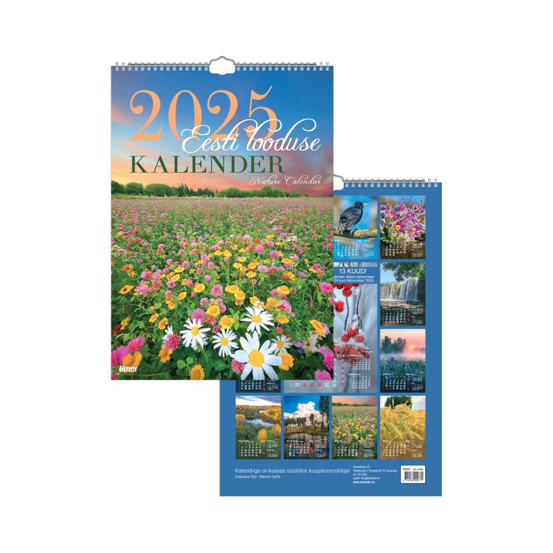 Size: 300 x 245 mm Spiral binding Hanging hole Static date marker Language: Estonian and English Adventure calendar contains the following: national holidays of 37 countries with abbreviations, public holidays, national and national calendar holidays, flag days, week number, previous and next month.