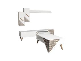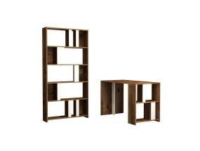 Study Desk & Bookshelf Lima - Walnut, White Marble