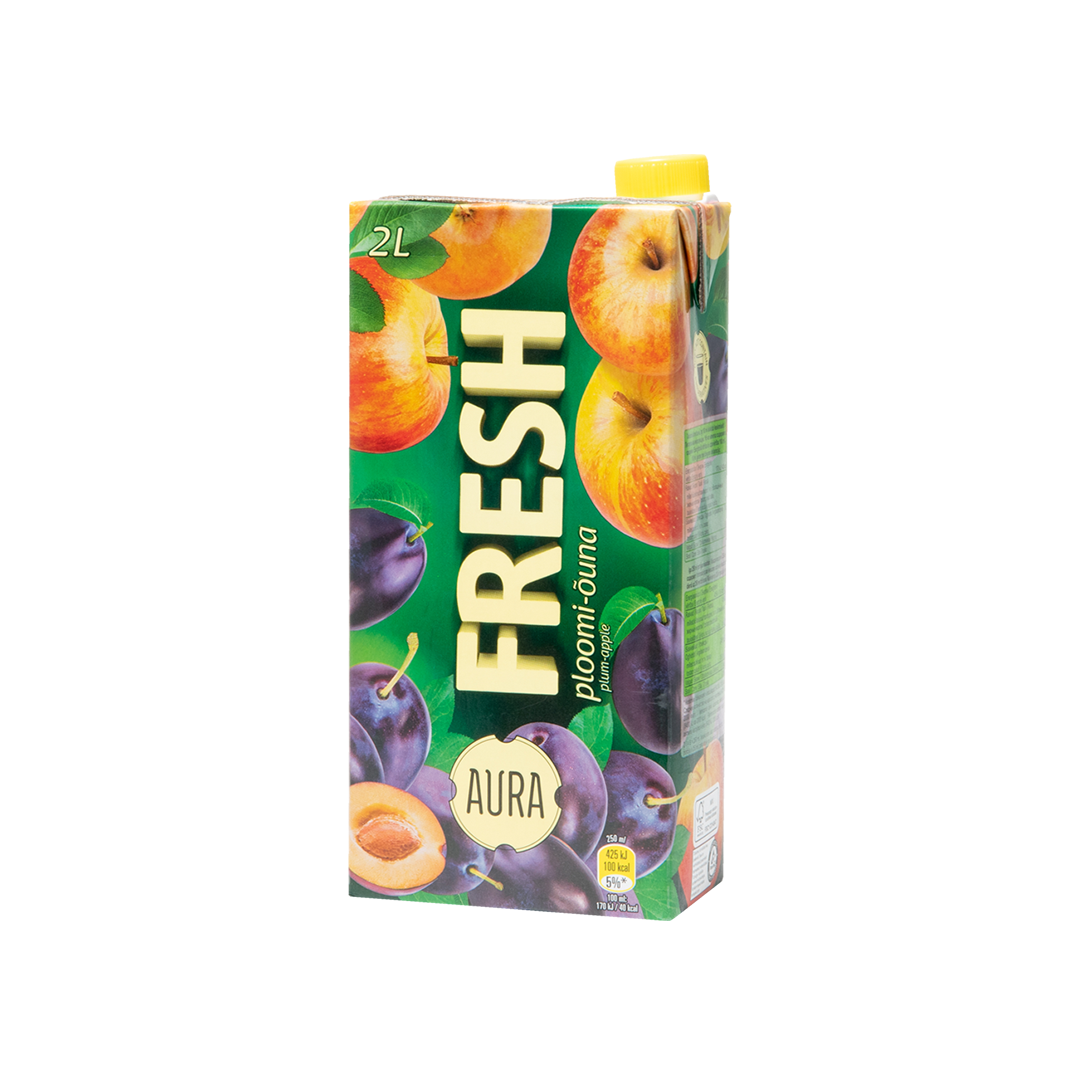 Luumut ja omenat ovat varmasti yleisimpiä ja rakastetuimpia hedelmiämme. Aura Freshin mehujuomassa makea ja pehmeä luumu sekä kirpeä ja punainen omena ovat yhdistyneet luodakseen herkullisen raikkaan ja maukkaan janonsammuttajan. Luumu-omenamehujuoma on säilöntäaineeton ja se on kätevässä 2 litran perhepakkauksessa.