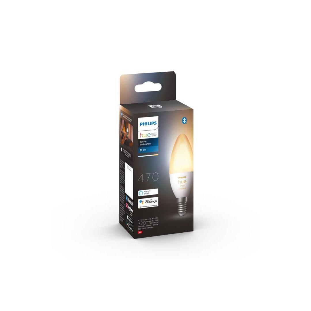 Lisää älykäs kynttilälamppu, jossa on lämpimästä valkoisesta viileään päivänvaloon vaihteleva valo, joka auttaa sinua rentoutumaan, lukemaan, keskittymään tai antamaan energiaa. Ohjaa heti Bluetoothilla yhdessä huoneessa tai pariliitä Hue Bridgeen, niin saat käyttöön kaikki ominaisuudet.