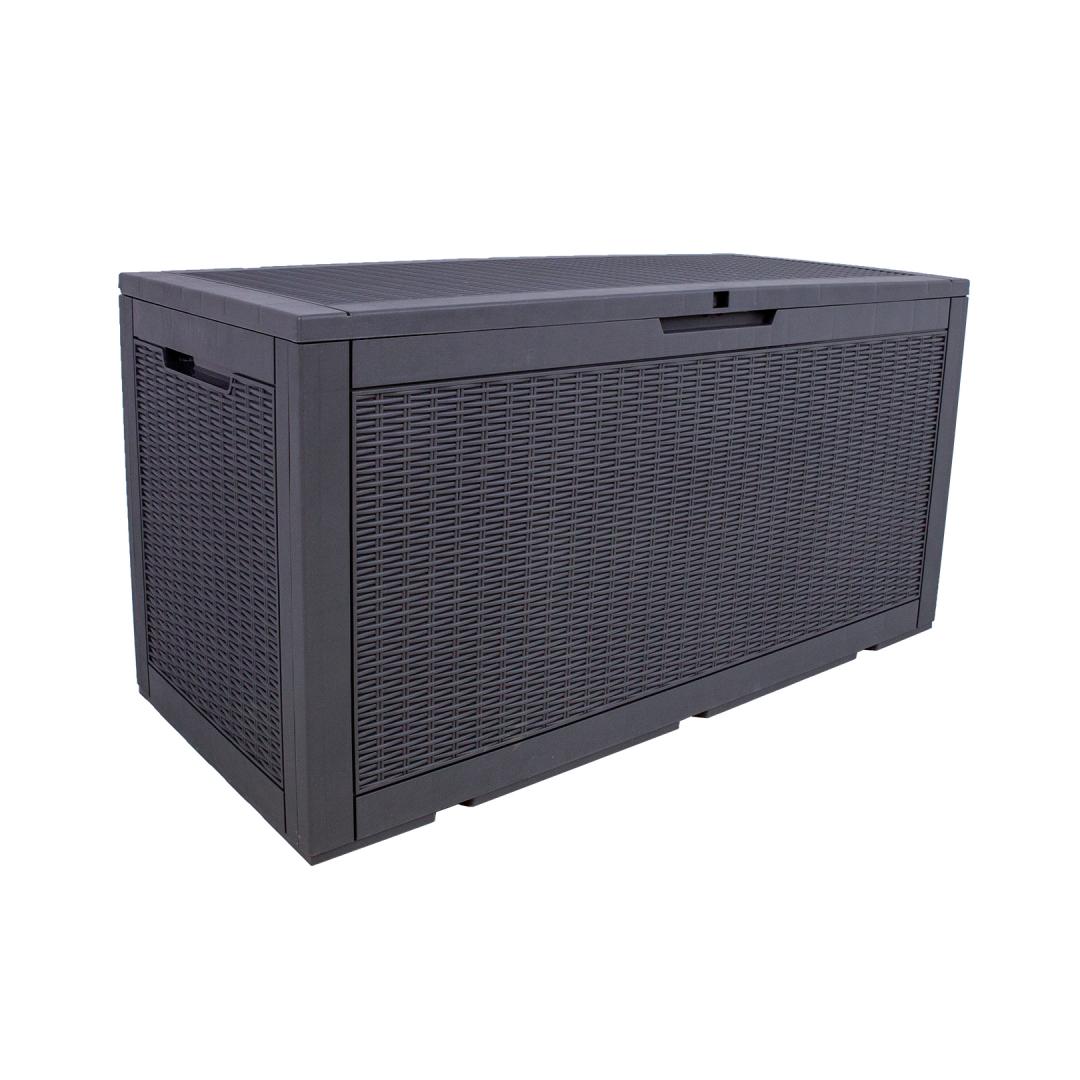 Säilytyslaatikko SAYA 122x54,5x62,3cm, harmaa muovi. Tukeva ja tilava muovilaatikko on hyvä ratkaisu puutarhassa tarvittavien tavaroiden tai kesähuonekalujen patjojen säilytykseen. Laatikko on säänkestävä ja UV-kestävä. Säilituskast SAYA 122x54,5x62,3cm, hall plastik. Tugev ja mahukas plastikkast on hea lahendus aias vajaminevate asjade või suvemööbli patjade hoiustamiseks. Kast on ilmastikukindel ja vastupidav UV-kiirgusele.