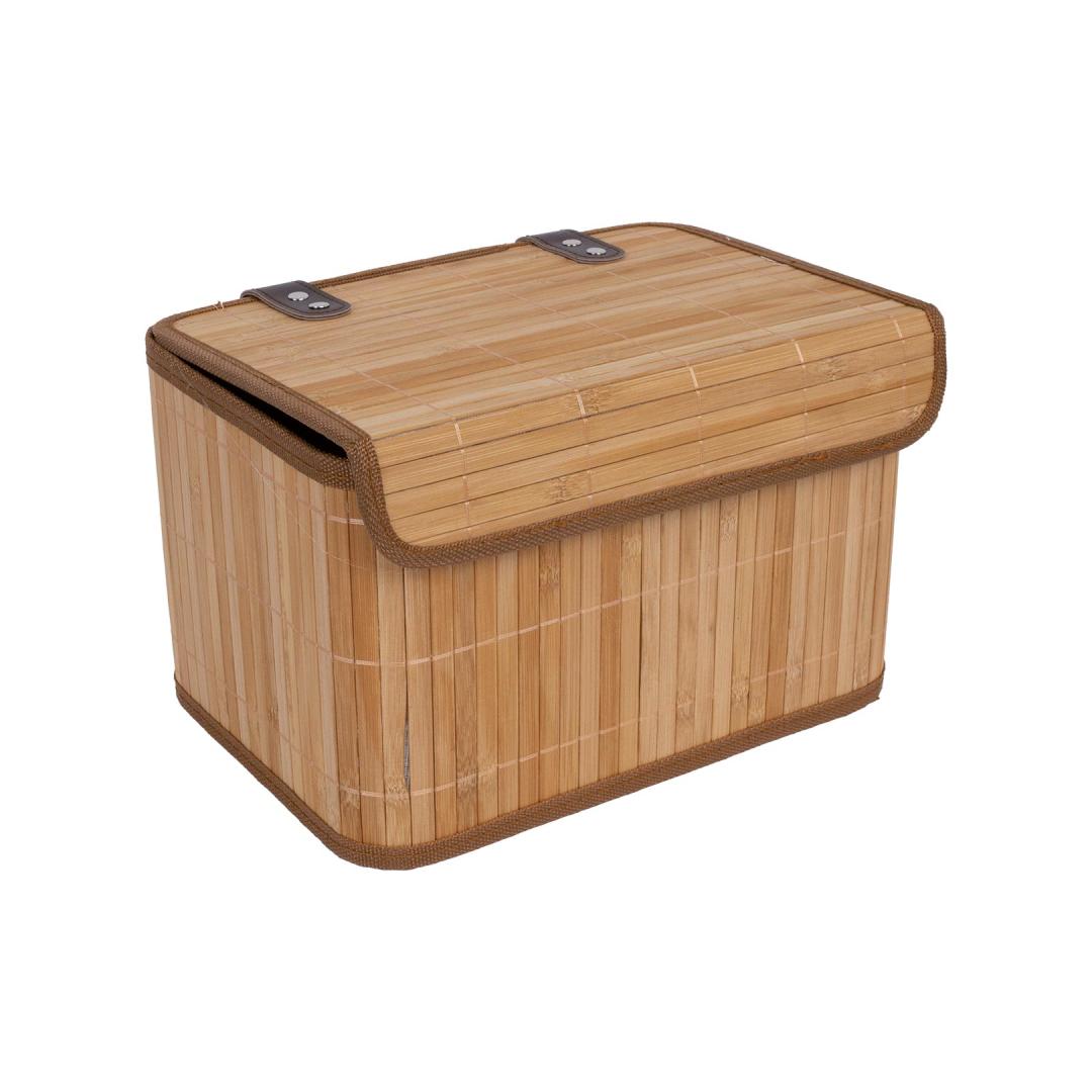 Bambusta valmistettu säilytyslaatikko kannella.