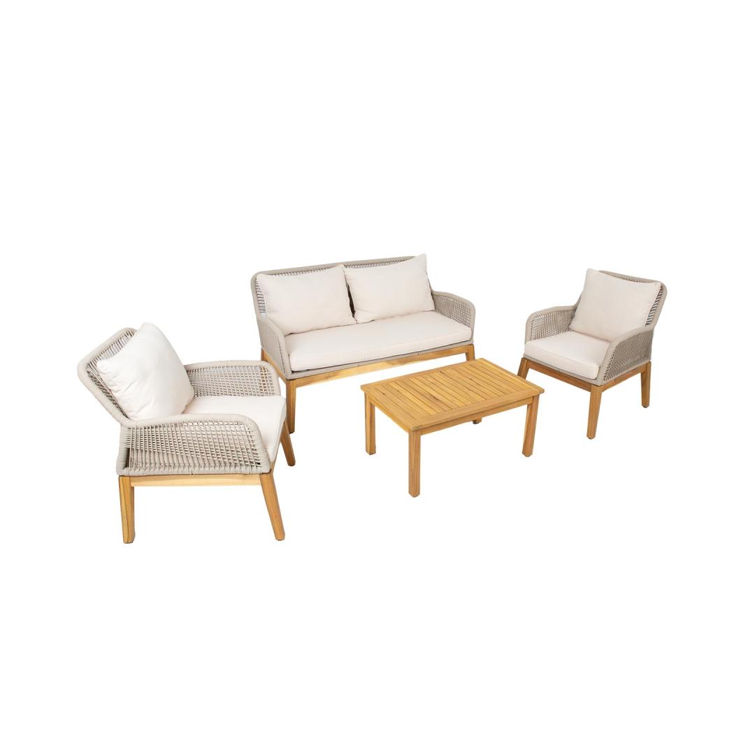 Puutarhakalustesarja FLORIDA pöytä, sohva ja 2 nojatuolia