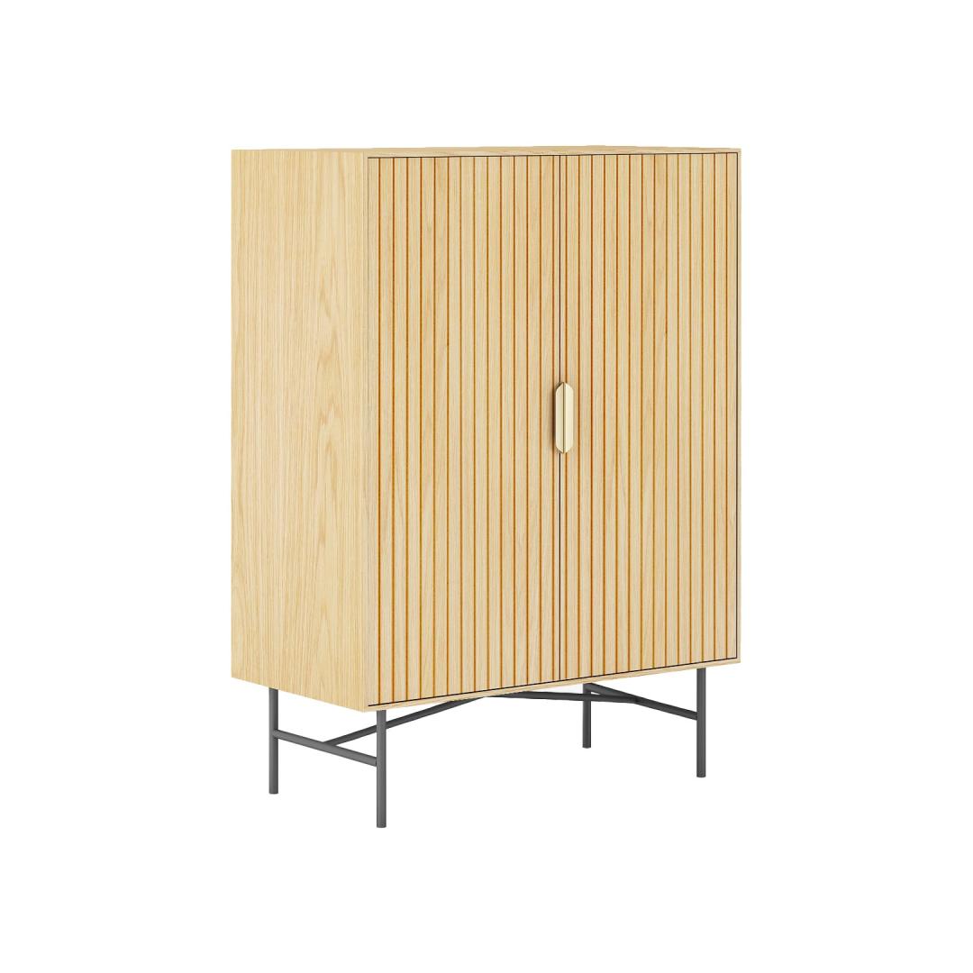Kaappi BASSEL 2 ovella 80x40xH110cm, 3D melamiini. Kaappi on valmistettu melamiinilevystä, jossa on vaalea puun kuviointi. Kylkipintaiset ovilevyt ja kultaiset kahvat antavat kaapille trendikkään ilmeen. Metallijalat ja pohjakehys on viimeistelty mustalla pulverimaalilla. Kapp BASSEL 2-uksega 80x40xH110cm, 3D melamiin. Kapp on valmistatud heleda puidudekooriga melamiinplaadist. Ribilised uksepaneelid ja kuldsed käepidemed annavad kapile trendika välimuse. Metallist jalad ja alusraam on viimistletud musta pulbervärviga.