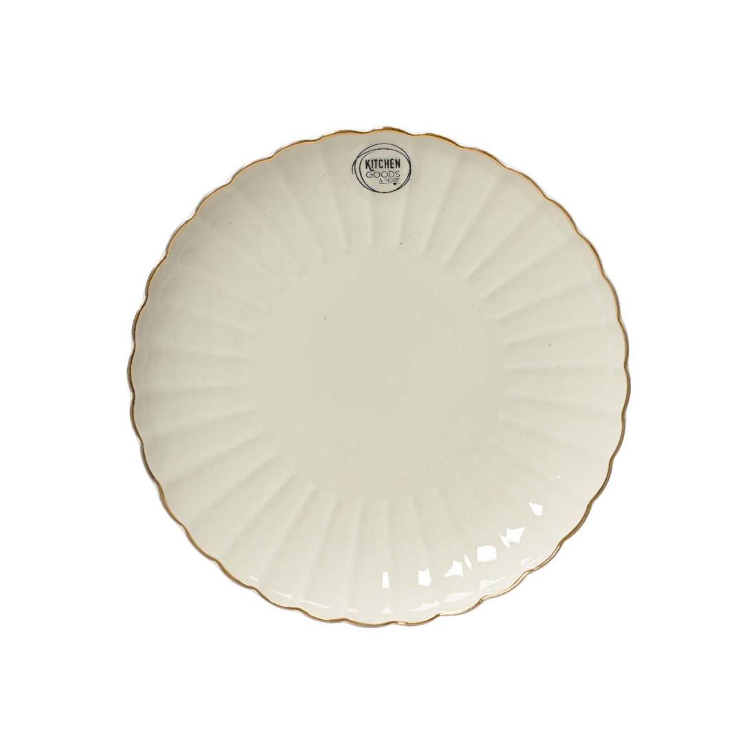Lautanen. Kiiltävä, kultainen reunus. Materiaali: posliini. Mitat: D26,6xH3,3cm. 2626.6.3.3.3.5.5 Ei sovellu mikroaaltouuniin eikä astianpesukoneeseen. Taldrik. Läikiv, kuldse äärega. Materjal: portselan. Mõõdud on D26,6xH3,3cm. Ei sobi kasutamiseks mikrolaineahjus ja nõudepesumasinas.