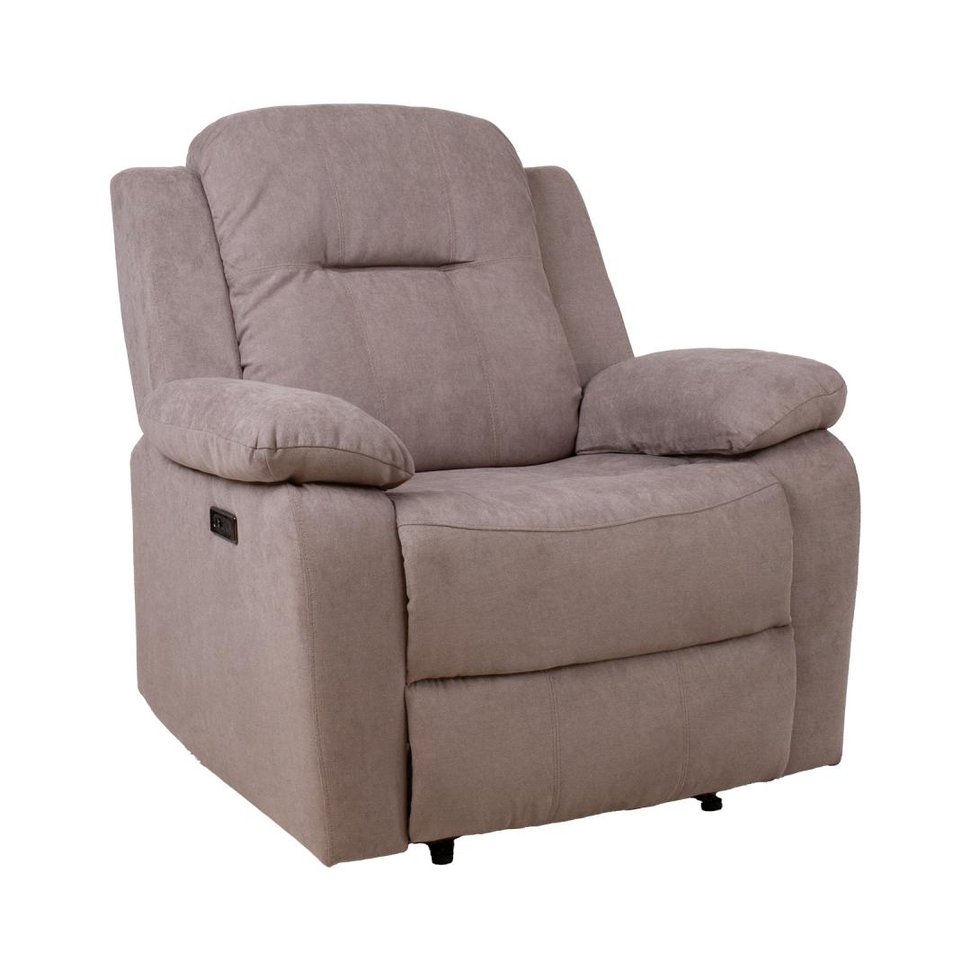 Nojatuoli LOWRI sähköinen lepotuoli, taupe. Lepotuoli on varustettu sähköisellä mekanismilla, jolla jalkatuen asentoa voidaan muuttaa. Kun jalkatukea nostetaan, selkänoja liikkuu sen mukana pehmeästi. Verhoilumateriaali: 100 % polyesterikangas. Runko ja ripustus: puu, vaneri ja metalli. Istuimen sisällä on taskujousilohko. Verhoilu: polyuretaanivaahto, 28 kg/m³. Kokonaismitat: 99x95xH102cm. Istuimen syvyys 53cm, istuimen korkeus 48cm. Käsinojan korkeus maasta 63cm. Tugitool LOWRI elektriline recliner, taupe. Recliner tüüpi tugitooli jalatoe asendit on võimalik muuta elektrilise mehhanismi abil. Jalatuge üles tõstes liigub seljatugi sujuvalt kaasa. Kattematerjal: 100% polüesterkangas. Karkass ja vedrustus: puit, vineer ja metall. Istme sees on pocket vedruplokk. Polsterdus: polüuretaanvaht 28kg/m³. Tugitooli üldmõõdud on 99x95xH102cm. Istme sügavus 53cm, istme kõrgus 48cm. Käetoe kõrgus maast 63cm.