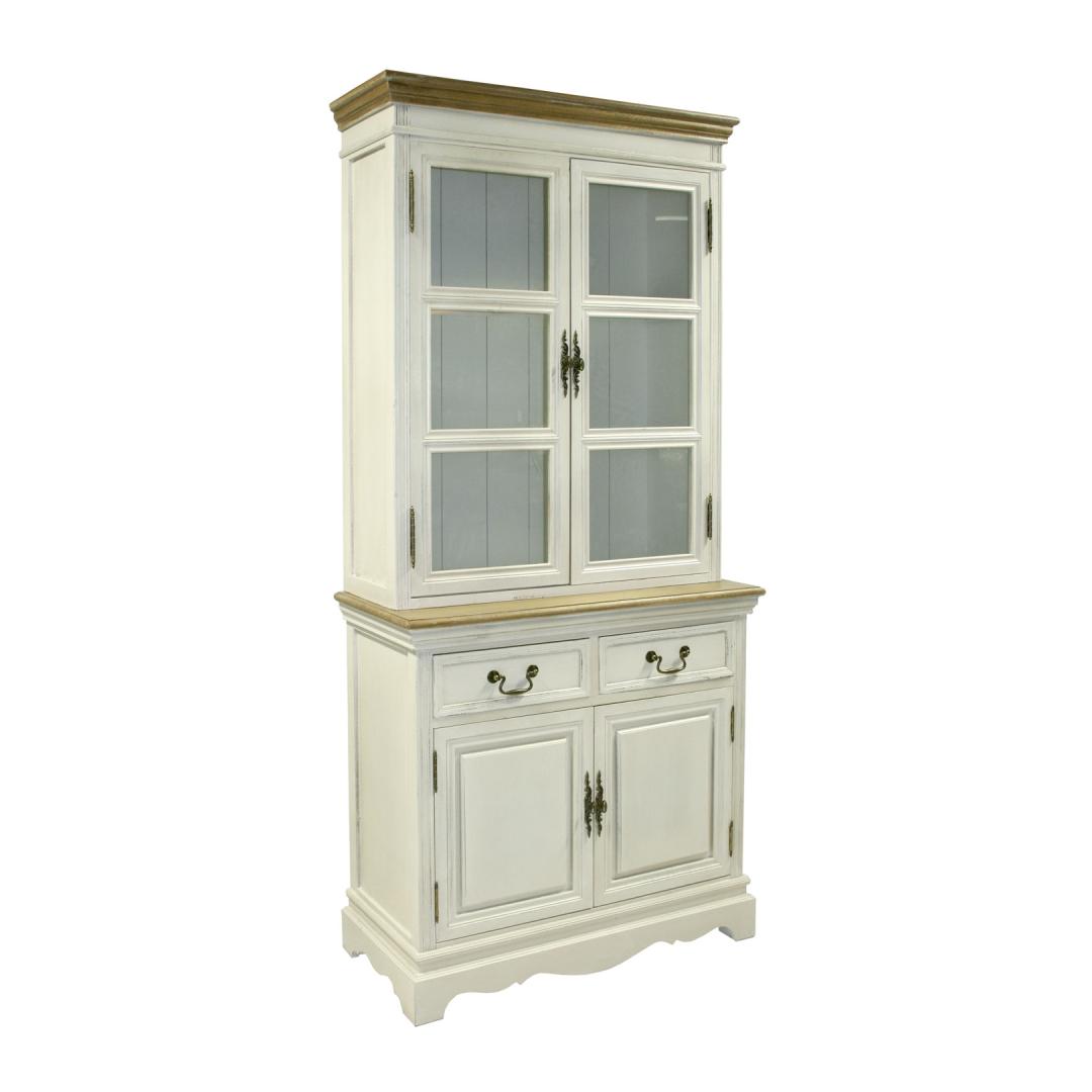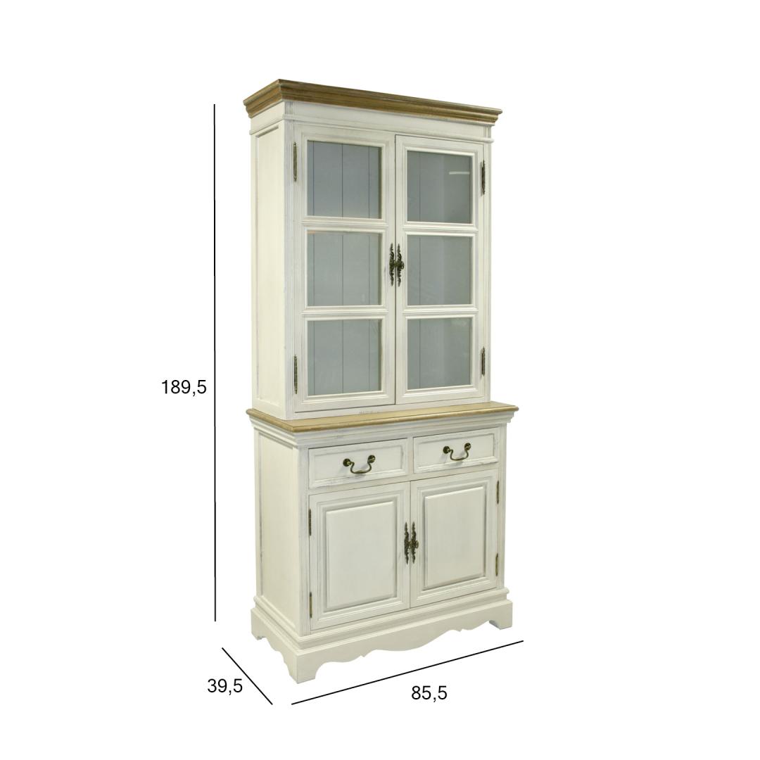Vitriinikaappi SAMIRA 85,5x39,5/31xH189,5cm, antiikkivalkoinen/luonnollinen