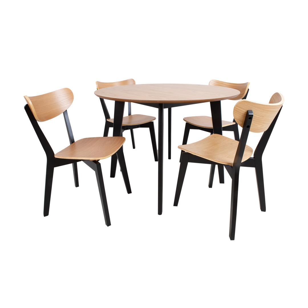 Ruokasetti ROXBY pyöreä pöytä D105xH76cm, 4 tuolia (AC85660), tammi/musta