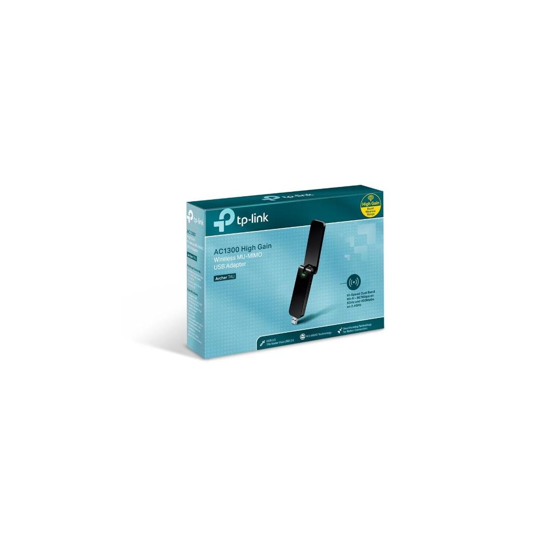 Langaton taajuusalue 2,4/5 GHz, lisävarusteet mukana AC1300 High Gain Wireless MU-MIMO USB-sovitin Archer T4UPika-asennusopasLähde-CD-levy Erittäin nopea Wi-Fi - 1300 Mbps langaton nopeus (400 Mbps 2,4 GHz:n kaistalla ja 867 Mbps 5 GHz:n kaistalla) ja tuki seuraavan sukupolven 802.11ac Wi-Fi -standardille