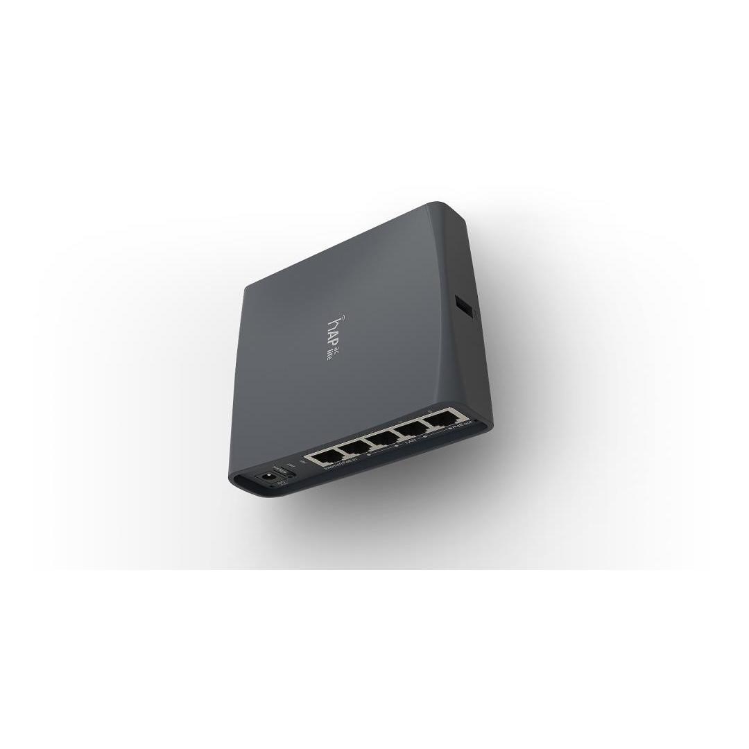 MikroTik RB952Ui-5ac2nD-TC hAP ac lite-torni, jossa 650 MHz:n suoritin, 64 Mt RAM-muistia, 5xLAN, sisäänrakennettu 2,4 GHz:n 802.11b/g/n-kaksoisketjuinen langaton verkko, jossa on integroitu 802.11ac-kaksoisketjuinen langaton verkko, jossa on integroitu antenni, US