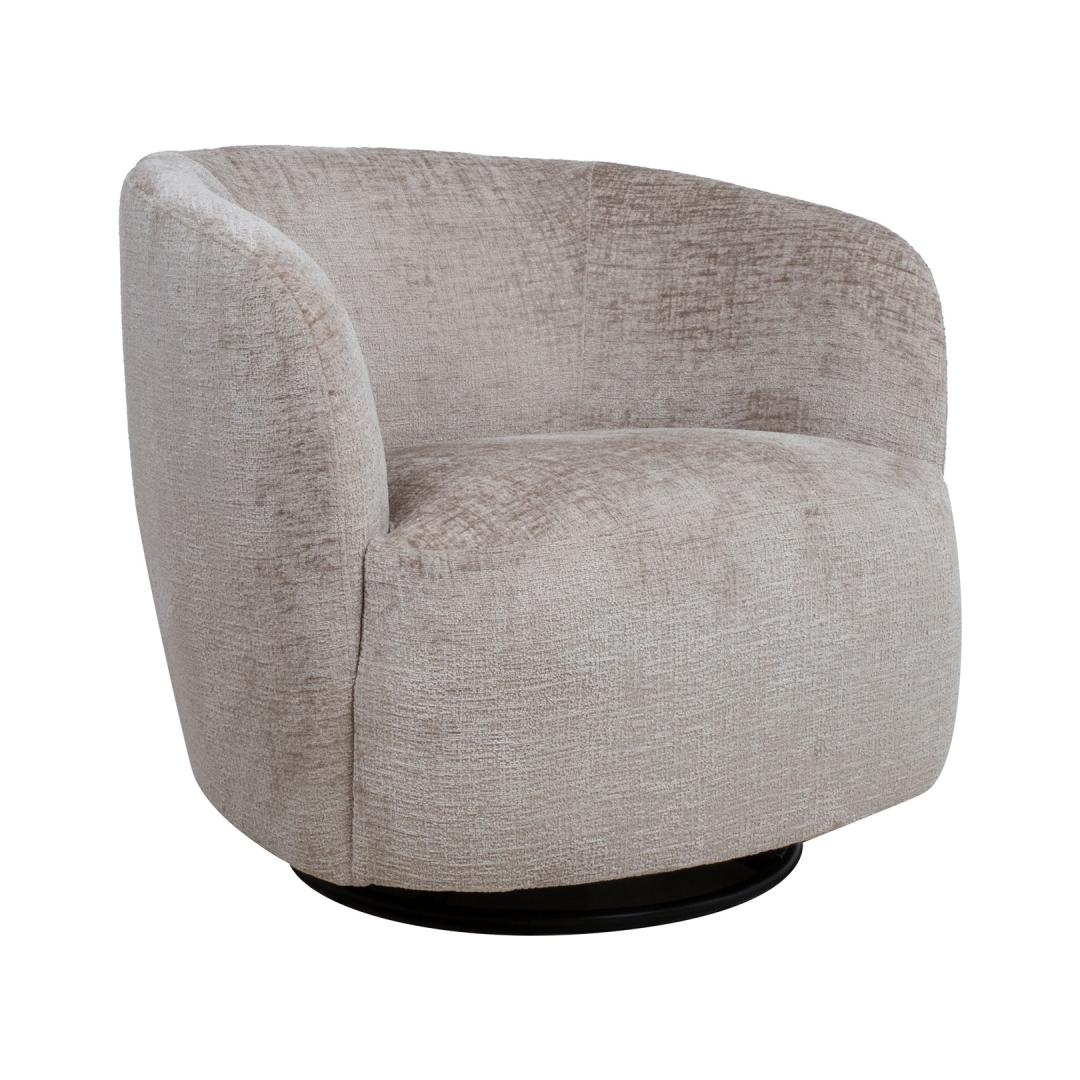 Nojatuoli MANUELA beige. Pyöreän muotoinen 360° kääntyvä nojatuoli on mukava ja toimiva ja sopii täydellisesti sekä kotiin että toimistoon. Istuinrunko on valmistettu puusta ja vanerista. Istuimen sisällä on taskujousilohko. Verhoilu on valmistettu polyuretaanivaahdosta ja polyesterikuidusta. Verhoilu on valmistettu polyesterikankaasta, Martinda arvo 41 000. Tuolin kokonaismitat ovat 84x82xK75cm. Istuimen leveys 51cm, istuimen syvyys 56cm, istuimen korkeus 45cm. Tugitool MANUELA beež.