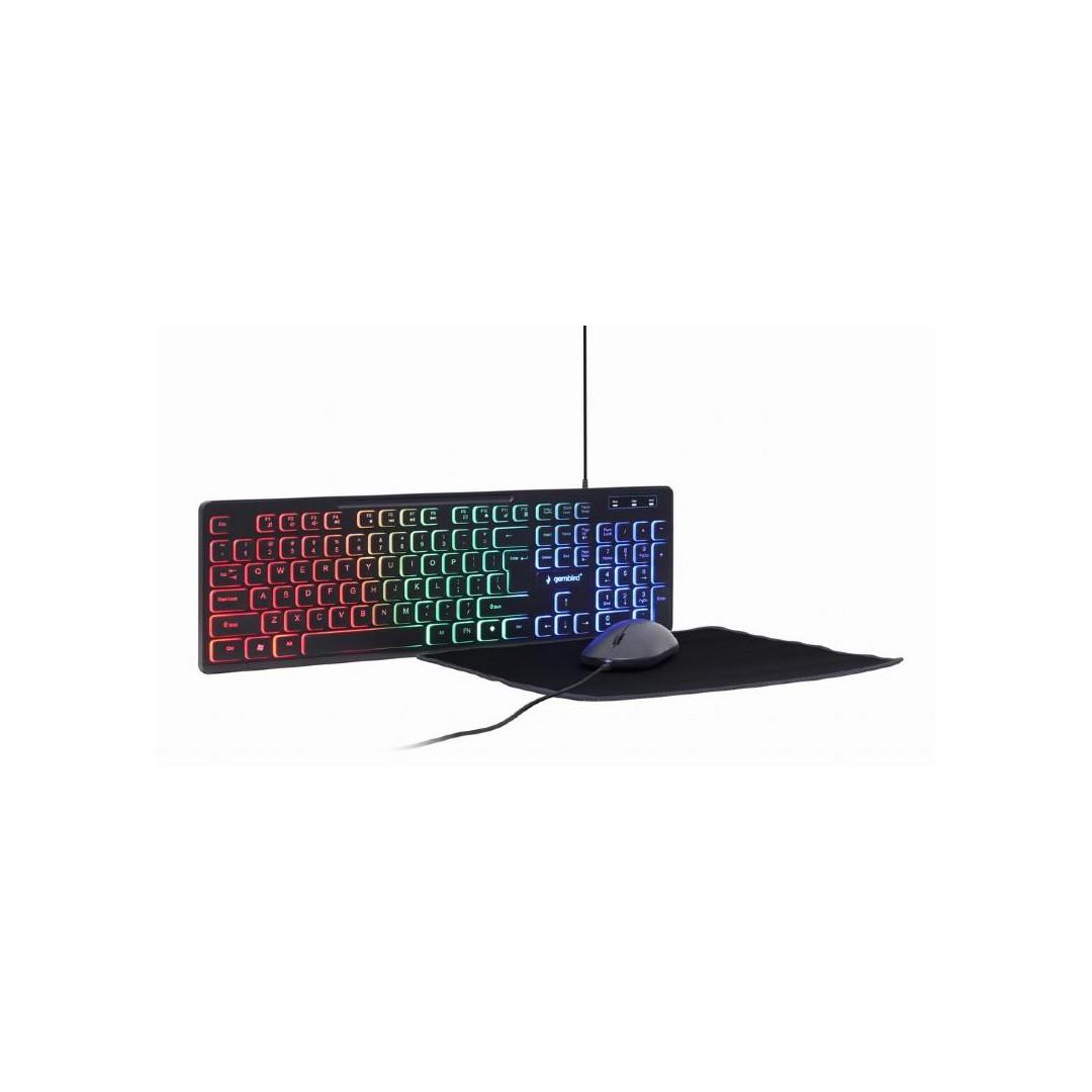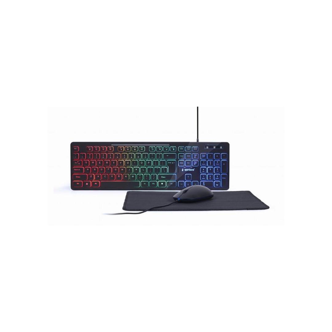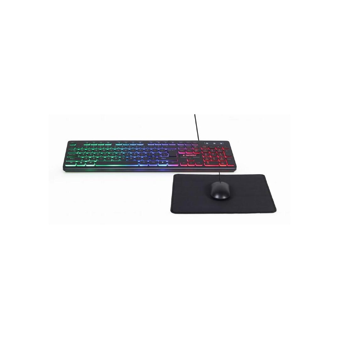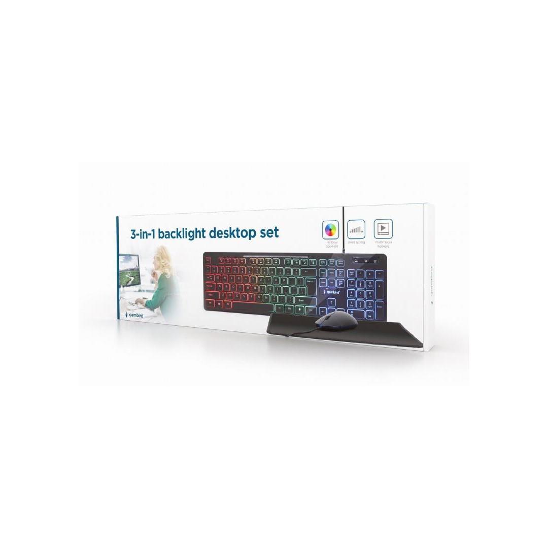 - Täydellinen taustavalaistu työpöytäsetti: näppäimistö, hiiri ja hiirimatto