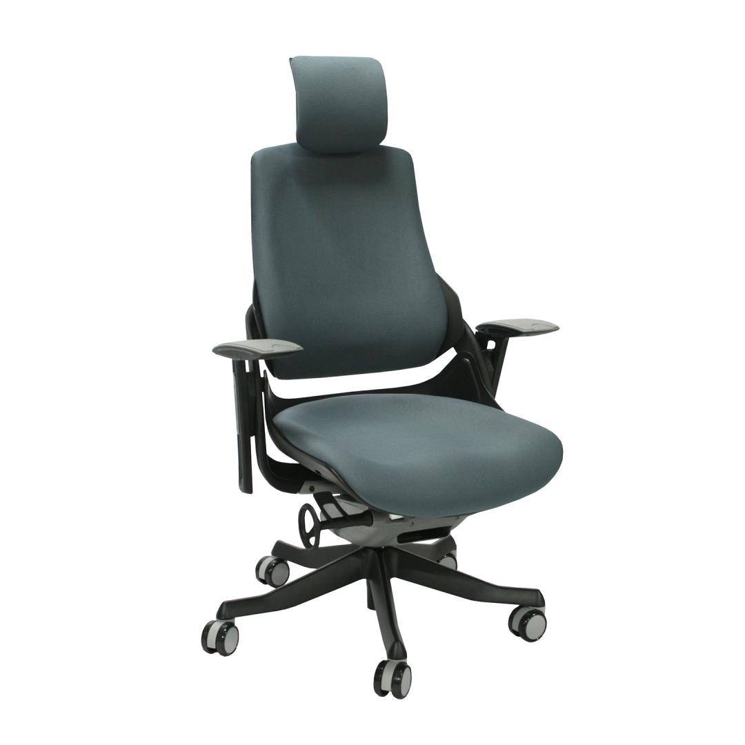 Työtuoli WAU harmaa. WAU-tuolissa yhdistyvät erinomainen ergonomia ja urheilullinen tyyli, ja se tarjoaa parhaan mahdollisen tuen ja tyytyväisyyden koko työpäivän ajan. Tuolin ulkorunko on mustaa muovia ja rungon sisäosat on valettu harmaasta muovista (100 % PP-kierrätettävää). Selkänojan muovirunko on vahvistettu lasikuidulla. Tuolin istuin- ja selkänojan verhoilu on päällystetty harmaalla polyesterikankaalla, Martindale-arvo 50 000. Tuolissa on synkronoitu mekanismi. Selkänojan kulma on lukittavissa ja kaltevuus säädettävissä. Istuinkorkeus on säädettävissä kaasusäätimellä. Pääntuen ja selkänojan korkeus on säädettävissä. Tuolissa on säädettävä lannerangan tuki. Käsinojien päälliset ovat harmaata elastomeeristä kestomuovia. Käsinojien korkeus ja kääntyvyys ovat säädettävissä. Tuolin 5-vartinen jalusta on valmistettu valetusta alumiinista ja viimeistelty mustalla epoksijauhemaalilla. Tuolissa on 60 mm:n lattiaa säästävät nailonpyörät. Tuolin kokonaismitat ovat 70x70xK112-129cm. Istuimen leveys 47cm, istuimen syvyys 49cm, istuimen korkeus 40-48cm. Painoraja 120kg.