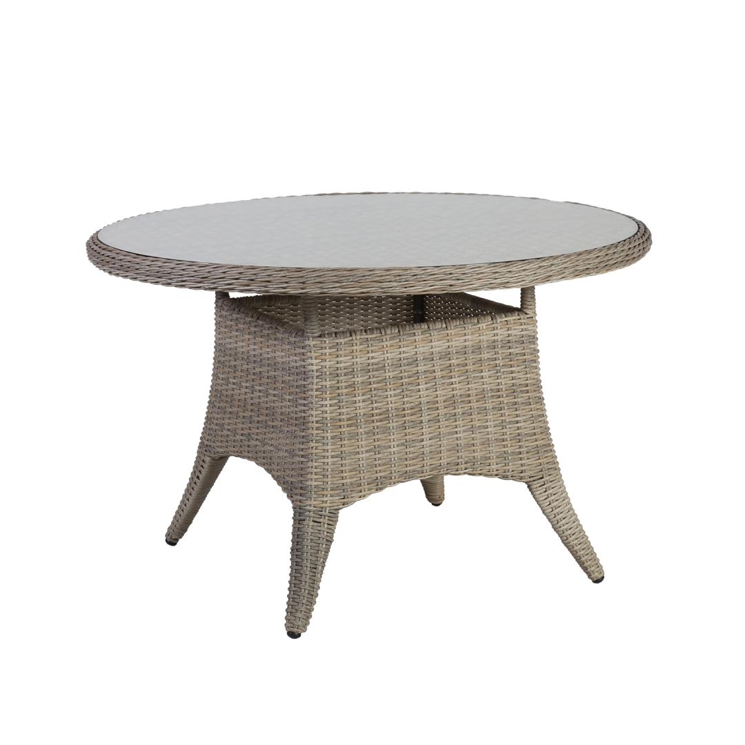 Pöytä PACIFIC D120xH75cm, pöytälevy: lasi, alumiinirunko muovipunoksella, väri: harmaa-beige