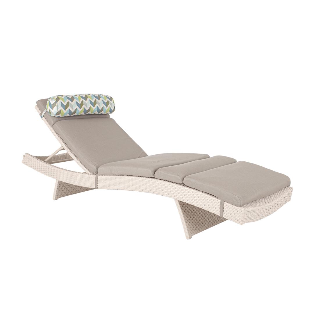 Lamami-tuoli STELLA beigeþ. Alumiinirunko on päällystetty valkoisella muovipunoksella. Sarjaan kuuluu pehmeä istuinpäällinen, jossa on tyyny. Istuinpäällinen on valmistettu UV- ja säänkestävästä sunbrella-kankaasta (100 % akryyli). Nojaistuimen selkänoja voidaan asettaa vaaka-asentoon tai voit valita neljästä asennosta tarpeidesi mukaan. Tuolin kokonaismitat ovat 200x65xH33cm. Selkänojaosan pituus on 80cm ja istuinosan pituus 116cm. Istuimen päällisen mitat ovat 80/116x59/66x6cm, tyynyn mitat ovat 58xD15cm. Tuote on erittäin kestävä vaihtelevissa sääolosuhteissa ja helppo huoltaa. Ulkokalusteiden käyttöiän pidentämiseksi suosittelemme ulkokalustesuojien käyttöä. HUOLTO: Kesäkauden päätyttyä suosittelemme puutarhakalusteiden säilyttämistä sisätiloissa. Kesäkauden päätyttyä suosittelemme jättämään kalusteet puutarhaan talvikuukausiksi. Käytä säilytykseen viileää, kuivaa ja hyvin ilmastoitua tilaa.