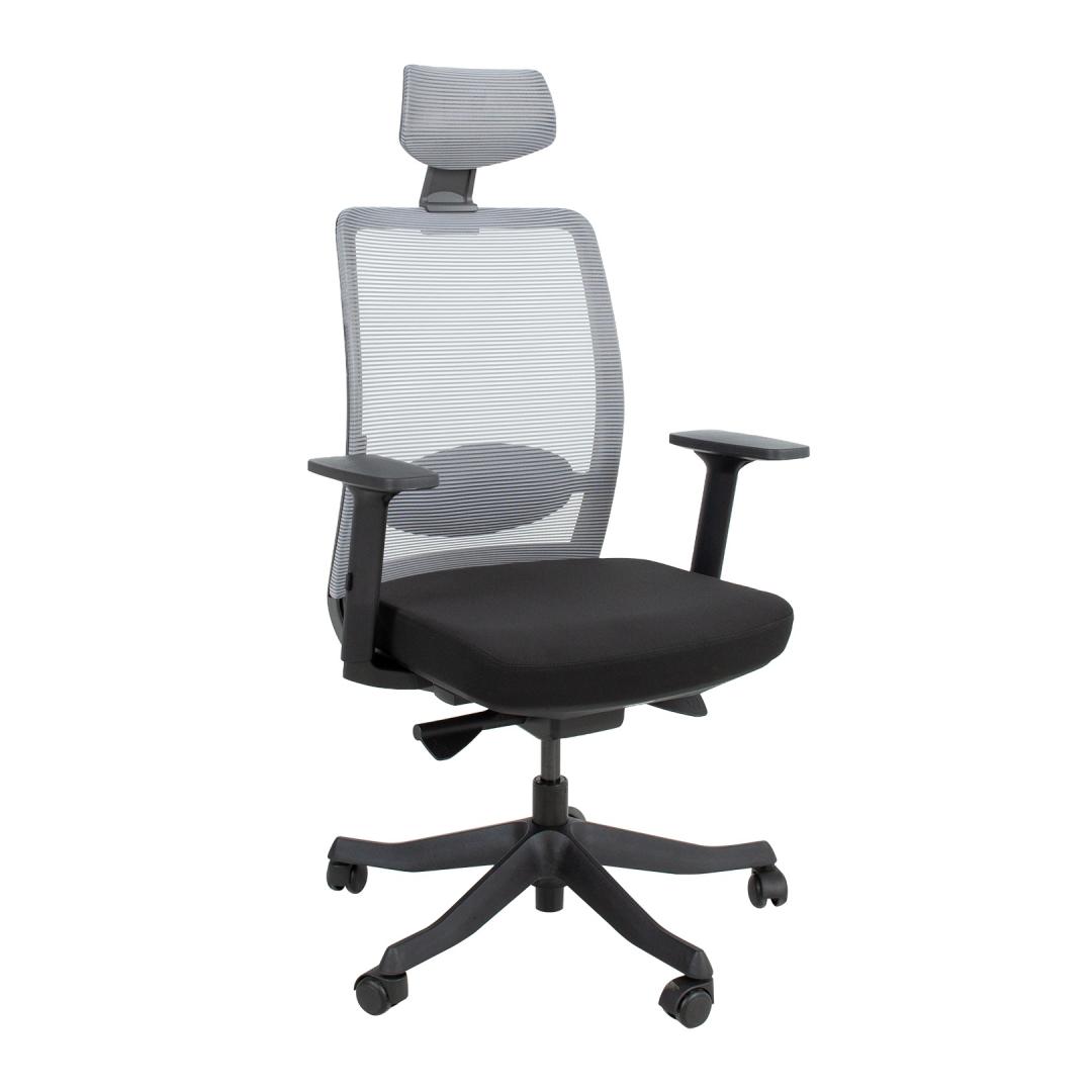 Työtuoli ANGGUN, musta. Istuin on päällystetty polyesterikankaalla, 50 000 Martindale. Selkänoja ja niskatuki on päällystetty polyesteriverkolla, joka takaa hyvän ilman liikkuvuuden. Painoherkkä synkronimekanismi säätää keinun jäykkyyttä automaattisesti istujan painon mukaan. Säädettävä lannerangan tuki. Istuimen syvyys säädettävissä välillä 39,5-47,5 cm. Istuinkorkeus on säädettävissä kaasusäätimellä. Käsinojat mustaa muovia. Käsinojien syvyys ja kulma ovat säädettävissä ja korkeus on säädettävissä 21-31 cm:n välillä. Pääntuen korkeus on säädettävissä. 5-vartinen muovinen jalkalista on musta, D70cm. Tuolissa on muovipyörät, 50mm. Tuolin kokonaismitat ovat 70x70xK116-130,5cm. Tuolin korkeus 116-130,5cm, selkänojan korkeus 52,5cm (pääntuen kanssa 72-76,5cm), istuimen korkeus 42-52cm, istuimen syvyys 39,5-47,5cm, istuimen leveys 45cm. Painoraja 120kg.