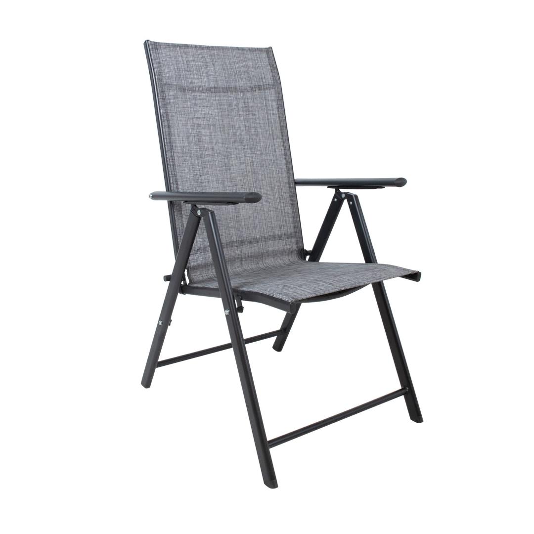 Tool DUBLIN 54x69xH102cm, harmaa. Kokoontaitettava puutarhatuoli säädettävällä selkänojalla on mukava ja käytännöllinen valinta. Tuolin tekstiilipintainen istuin päästää ilman läpi, kuivuu nopeasti ja on helppo huoltaa. Tuolin runko on valmistettu teräksestä ja viimeistelty tummanharmaalla pulverimaalilla. Kun haluat säätää selkänojan, nosta käsinojat ylös, valitse sopiva selkänojan asento ja kiinnitä käsinojat. Valittavana on viisi eri asentoa. Taitettuna tuoli on helppo kuljettaa tai säilyttää. Tuolin mitat ovat kokoontaitettuna 54x81x17cm. Istuimen leveys 45cm, istuimen syvyys 45cm, istuimen korkeus 44cm. Selkänojan korkeus 69cm, käsinojan korkeus 63cm. Painoraja 100kg.
