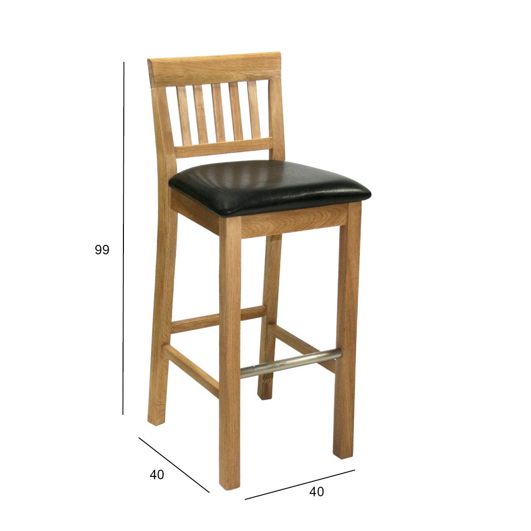 Baarijakkara LAURA 40x40xH99cm, istuin: keinonahka, väri: tummanruskea, puu: tammi, viimeistely: öljytty. Lisätietoja: painoraja 136kg.