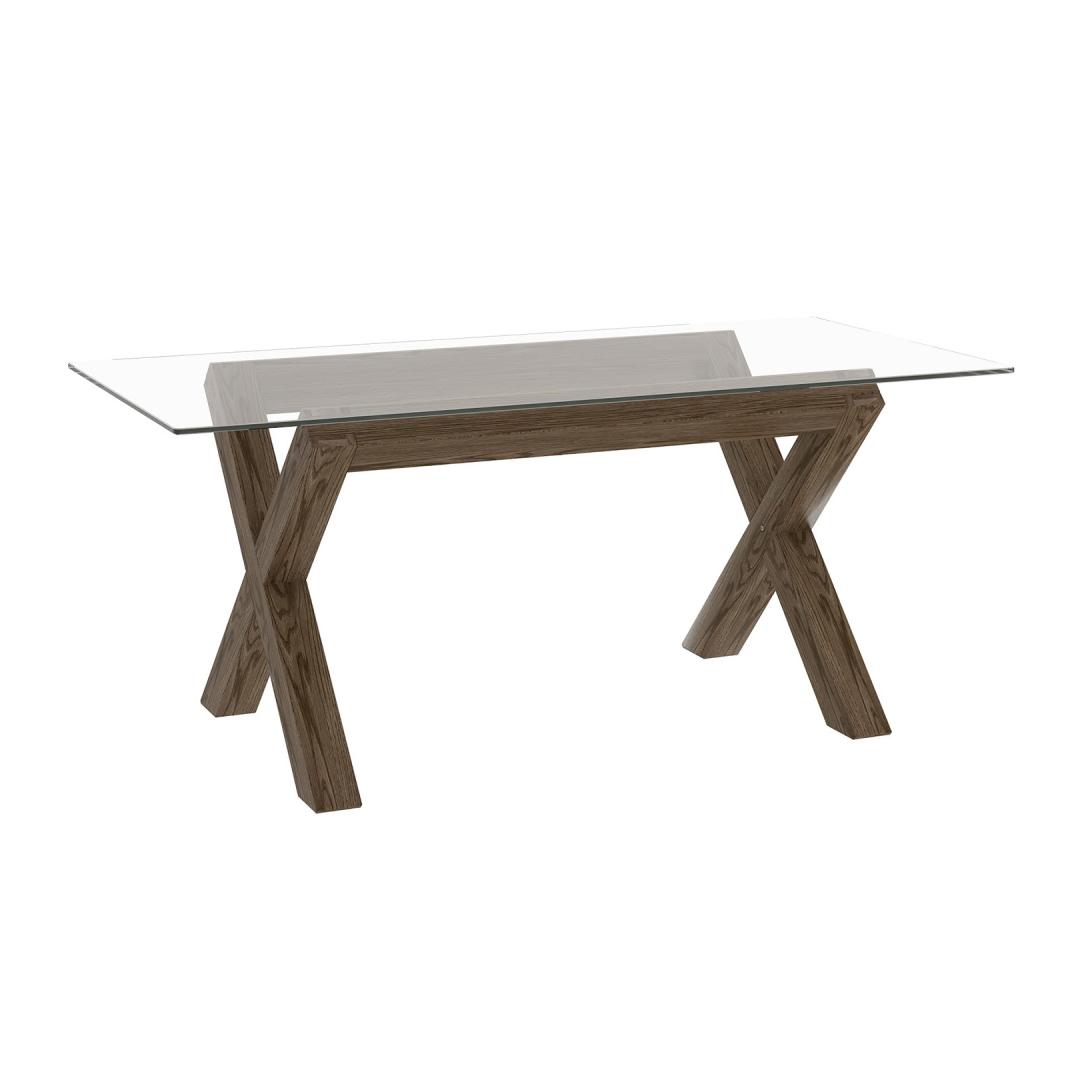 Ruokapöytä TURIN 180x90xH75cm. Pöytälevy: läpinäkyvä karkaistu lasi. Jalat massiivitammea ja viimeistelty savutammiöljyllä.