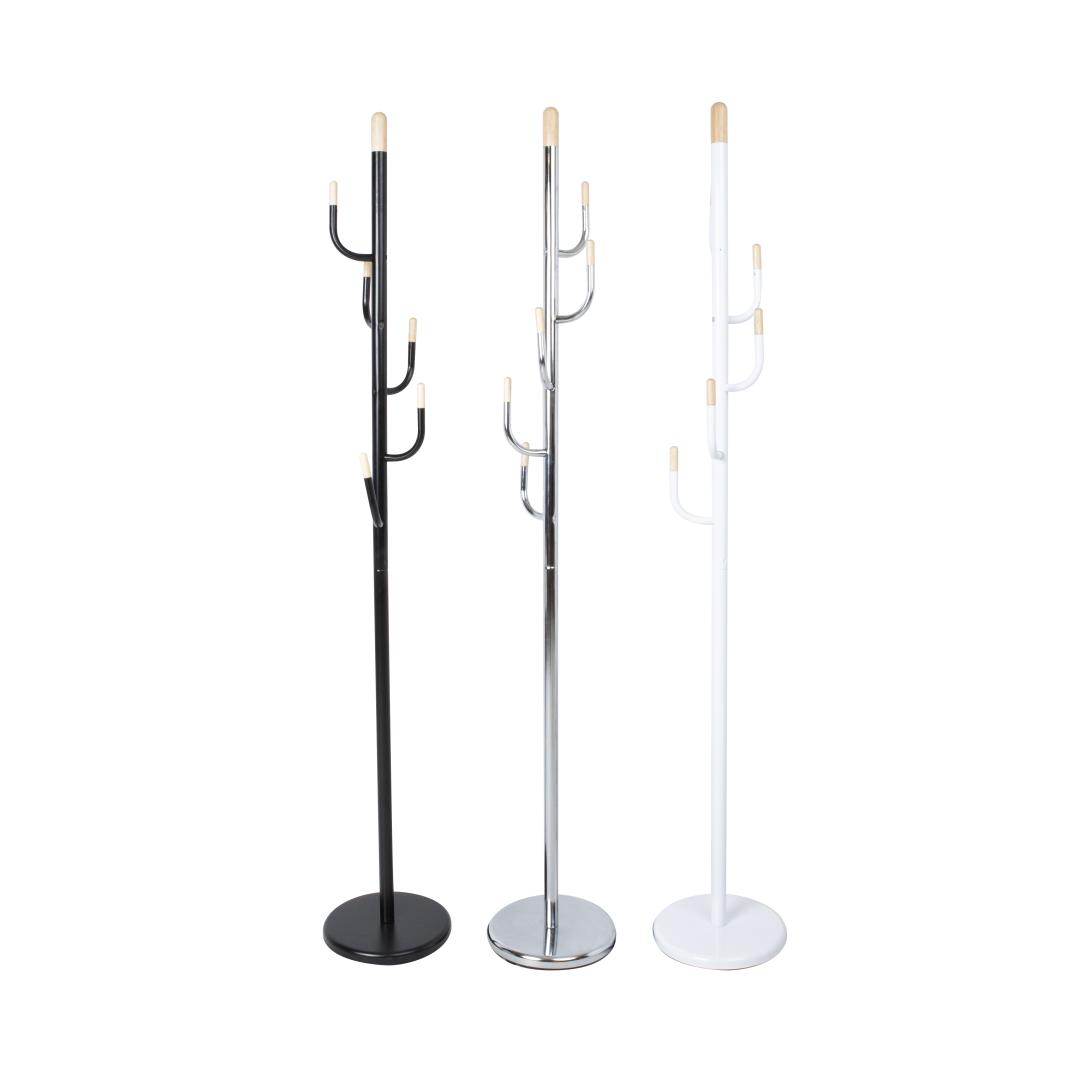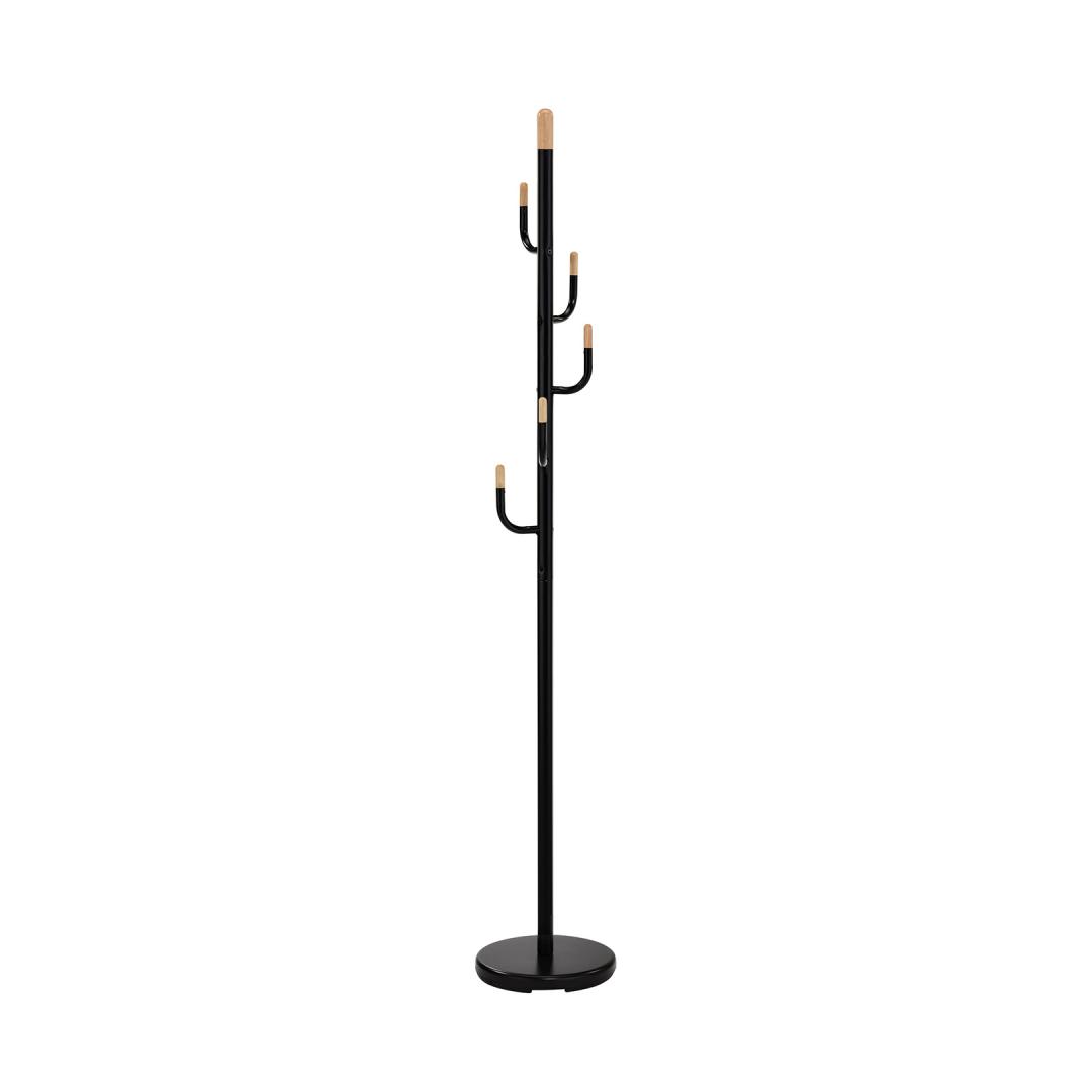 Lattiapäällyste GLADE musta. Käytännöllinen ripustin, joka sopii erinomaisesti päällysvaatteiden helppoon ripustamiseen. Tuotteen teräsrunko on pinnoitettu mustalla pulverimaalilla. Puuosissa on luonnollinen viimeistely. Lattiaripustimen mitat ovat D28xH174cm. Coat rack GLADE black. The practical coat rack is ideal for hanging clothes. The steel frame is finished in black powder coating. The wooden parts have a natural finish. The dimensions of the coat rack are D28xH174cm.