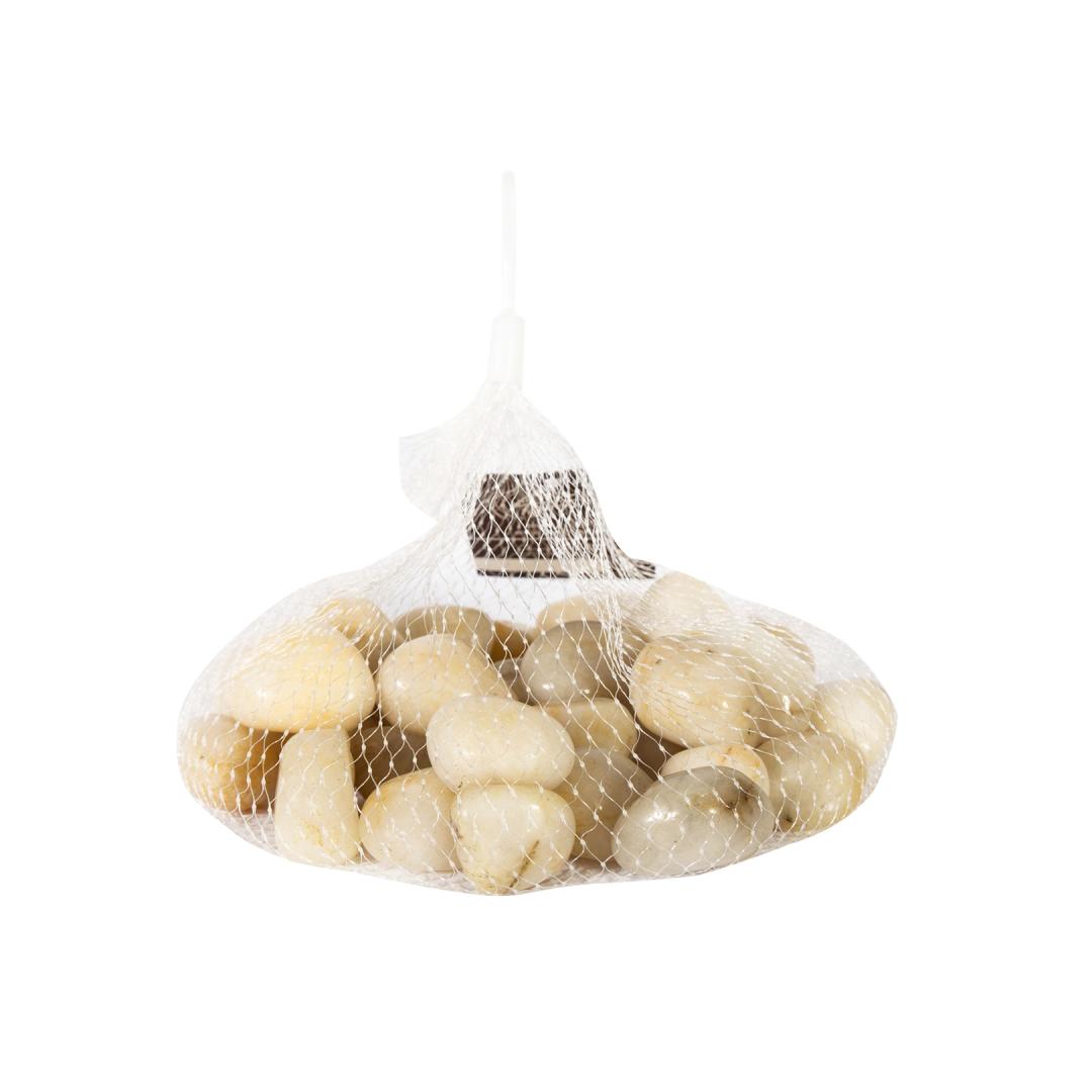 Luonnolliset kiillotetut luonnonkivet verkkopussissa.