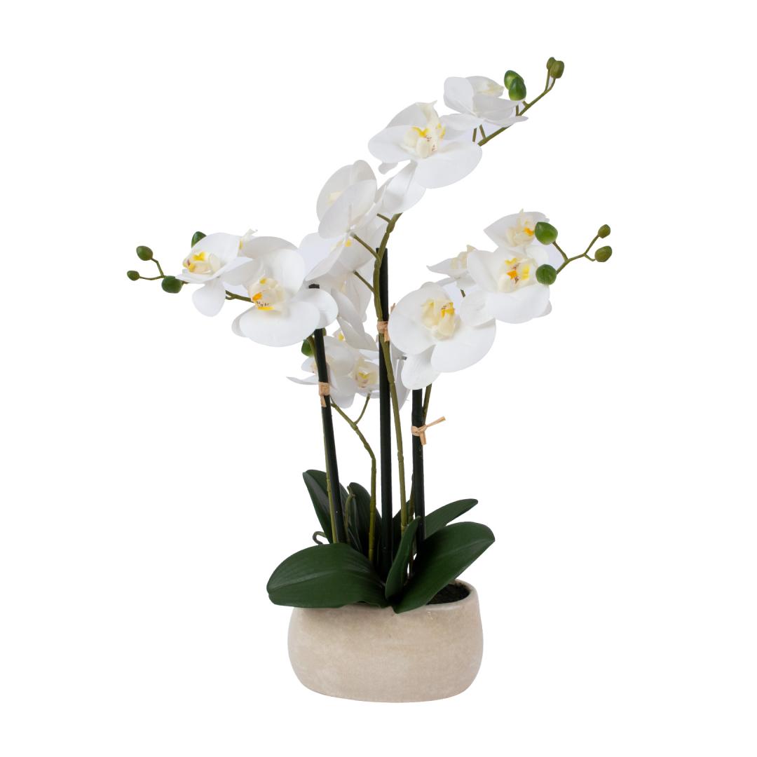 Valkoinen orkidea 4 oksalla IN GARDEN, H55cm, harmaa ruukku