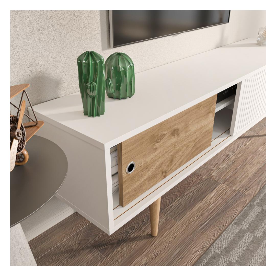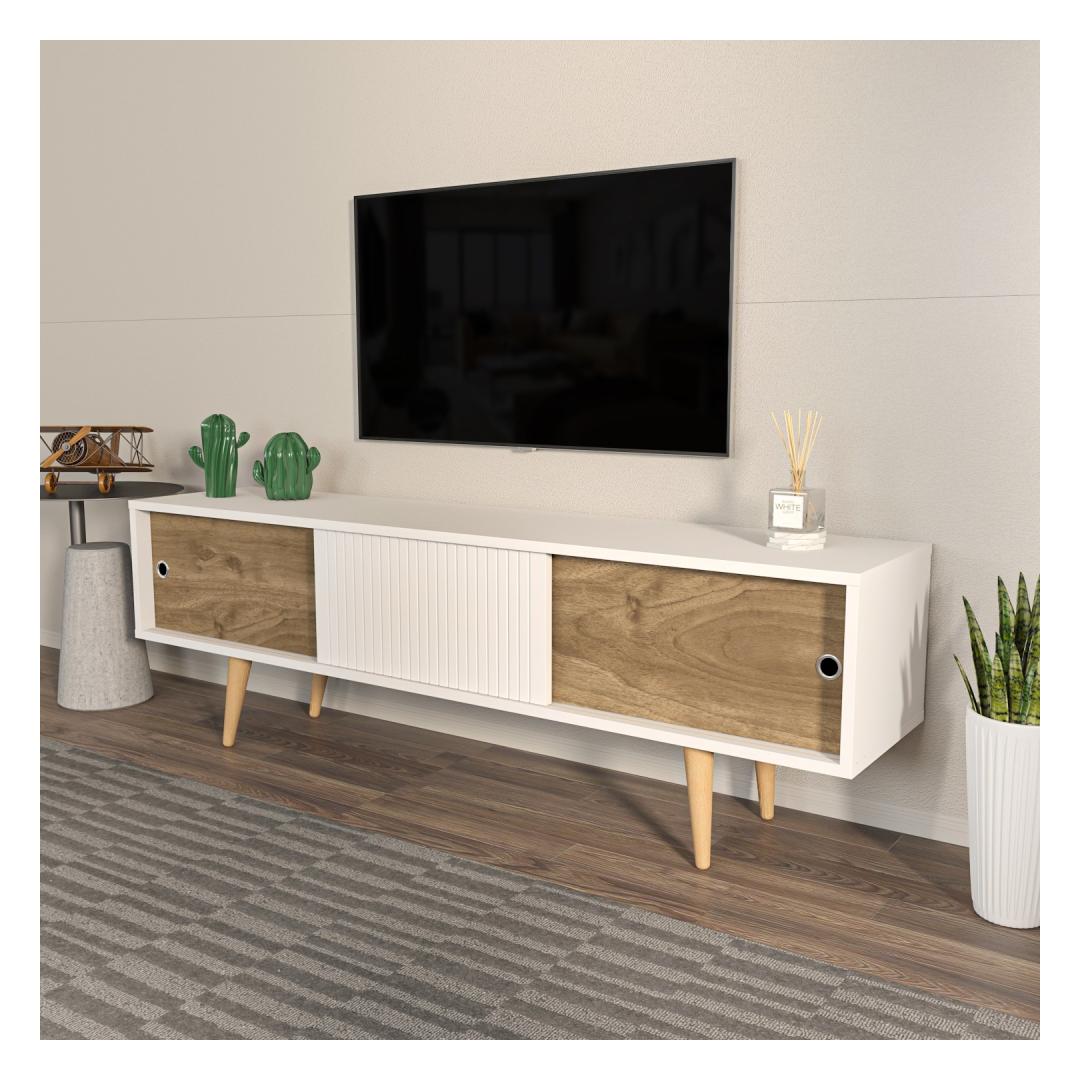Parandage oma eluruumi täiusliku televiisori statiivigaKas olete väsinud oma vanast, aegunud teleripuldist, mis ei tõsta teie elutoa stiili? on aeg uuendada meie uimastava teleripuldi, mis mitte ainult ei paranda teie vaatamisvõimalusi, vaid lisab teie ruumile ka elegantsi. Võrratu kvaliteet ja vastupidavus100% melamiinkattega puitlaastplaadist valmistatud telerialus on valmistatud kestma. 18 mm paksus tagab erakordse tugevuse, pakkudes stabiilset ja turvalist platvormi teie televiisorile. Ütle hüvasti kõikuvatele stendidele ja tere usaldusväärsele mööbliesemele, mis peab vastu.Täiuslik segu stiilist ja funktsionaalsusestTänu oma elegantsele disainile ja kaasaegsele välimusele täiendab meie teleripult vaevata iga sisekujundust. Valge ja pähklipuu värvi kombinatsioon lisab sellele elegantsi, muutes selle teie elutoa keskpunktiks. Selle avarate mõõtmete 160 cm laius, 45 cm kõrgus ja 34. 5 cm sügavus pakuvad piisavalt ruumi teie meediaseadmete, dvd-de ja muude oluliste esemete jaoks. Transformeeri oma vaatamiskogemusMeie televiisoripult mitte ainult ei paranda teie eluruumi esteetikat, vaid parandab ka teie vaatamiskogemust. Täiuslik kõrgus tagab optimaalse silmade kõrguse, vähendades teie kaela koormust ning pakkudes mugavat ja kaasahaaravat meelelahutuskogemust. Tehnilised üksikasjad:Materjal: materjal: 100% melamiiniga kaetud puitlaastplaatPaksus: 18 mmLaius: 160 cmKõrgus: 45 cmSügavus: 34,5 cmVärv: valge ja pähkelpuuVärskendage oma elutuba juba täna meie teleripuldiga ja muutke oma ruum stiilseks ja funktsionaalseks pelgupaigaks. Ärge rahulduge vähemaga, kui tegemist on teie meelelahutusruumiga. Tellige kohe ja kogege ise erinevust! Värv: White Walnut