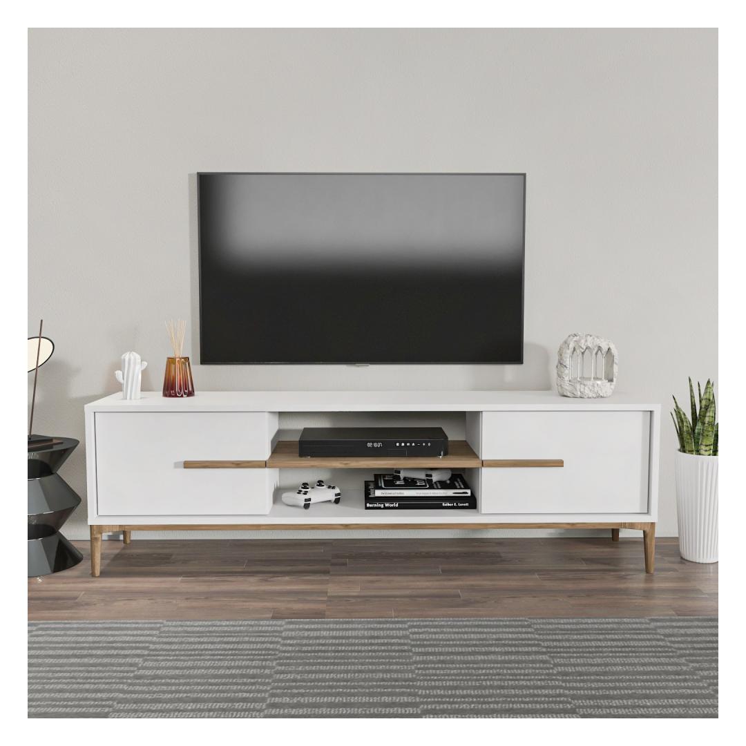 TV laud Eslem - White, Walnut