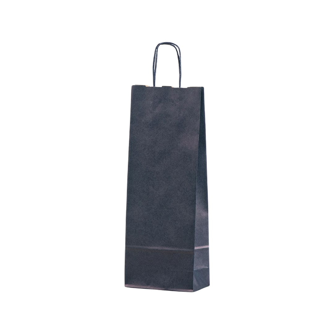 - Vahvasta voimapaperista valmistettu tummansininen viinipussi, jossa on kahvat.