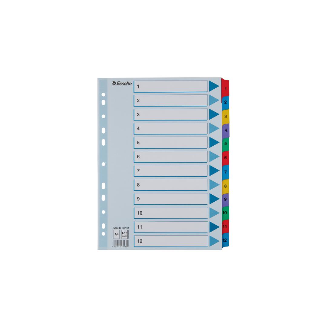 Rekisteröintiliuskat ESSELTE A4 1-12 värinen pahvi