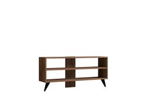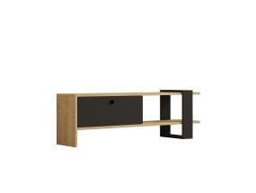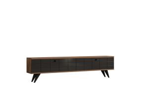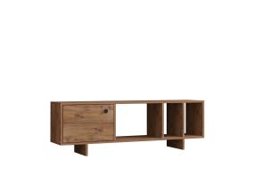 Televisiopöytä on valmistettu melamiinipinnoitetusta huonekalulevystä, jossa on puukuvioinen viimeistely. Pöydän jalat on sidottu kuparinvärisillä metallin yksityiskohdilla, jotka antavat pöydälle tyylikkään ilmeen ja varmistavat samalla pohjarakenteen lujuuden. Laadukkaat tv-telineet jokaiseen huoneeseen.