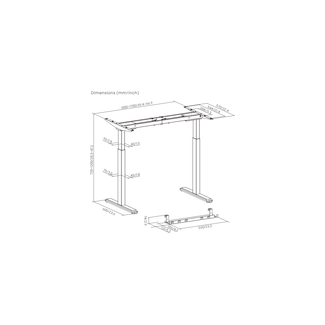 1000~1700x600x720~1200mm (39.4"~66.9"x23.6"x28.3"~47.2")